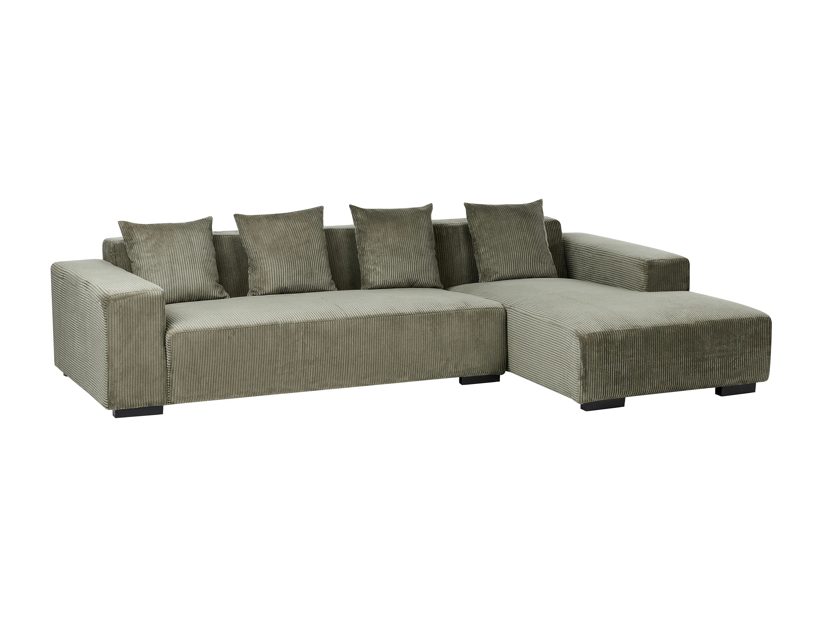 4-Sitzer Ecksofa L-Form Cord grün mit Chaiselongue links modern Lungo
