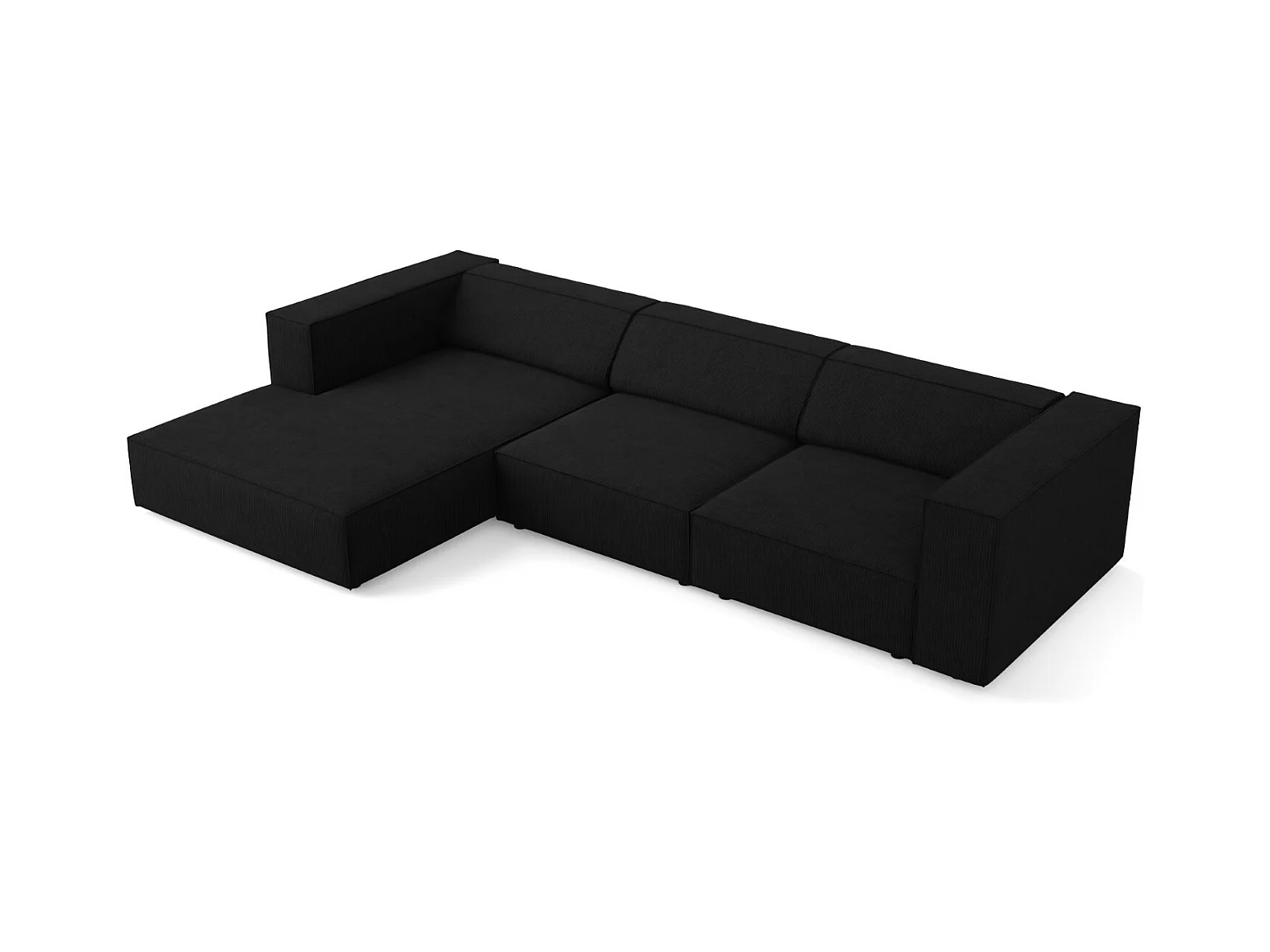 Cosmopolitan Design - 4-Sitzer Ecksofa links "Arendal" aus Chenille-Stoff mit Rippeneffekt schwarz - 284x166x70cm