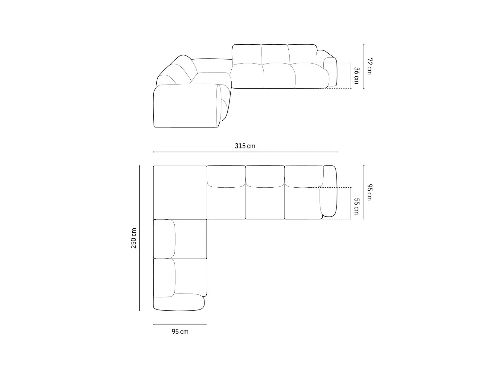 Cosmopolitan Design - 4-Sitzer Ecksofa links "Nolio" aus Chenille-Stoff grau - 315x250x72cm