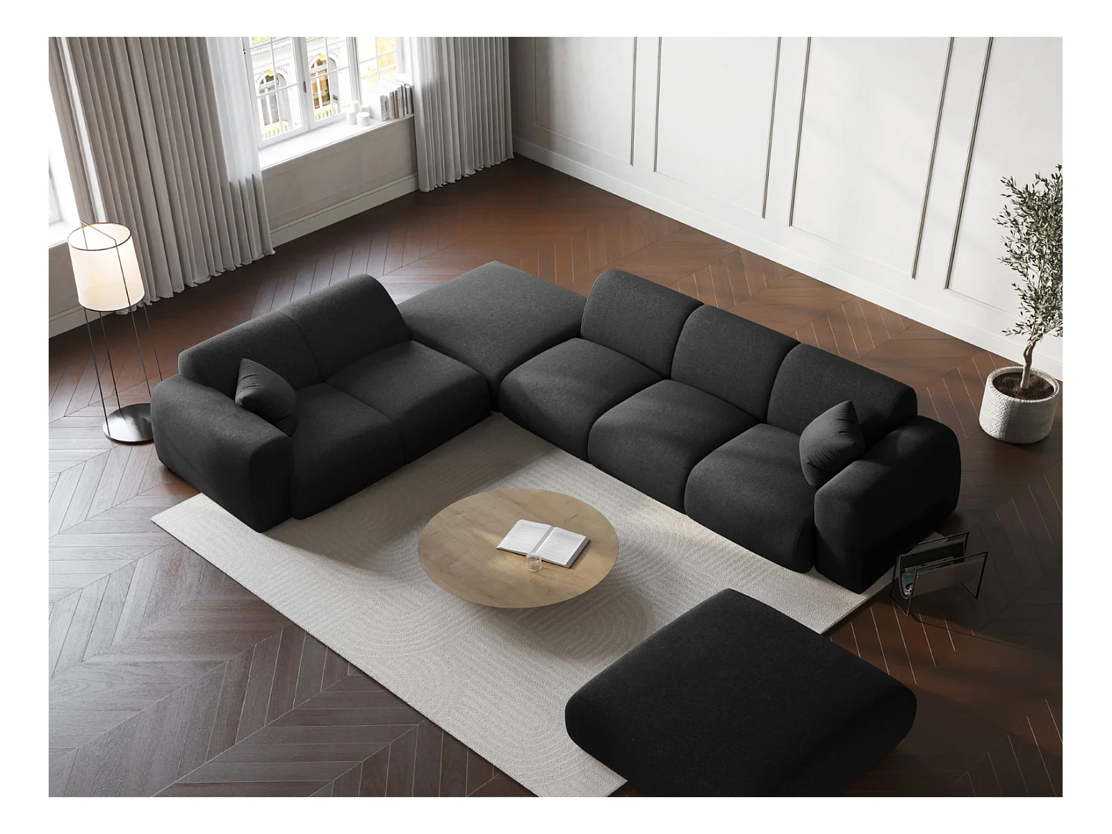 Cosmopolitan Design - 4-Sitzer Ecksofa links "Nolio" aus Chenille-Stoff schwarz - 315x250x72cm