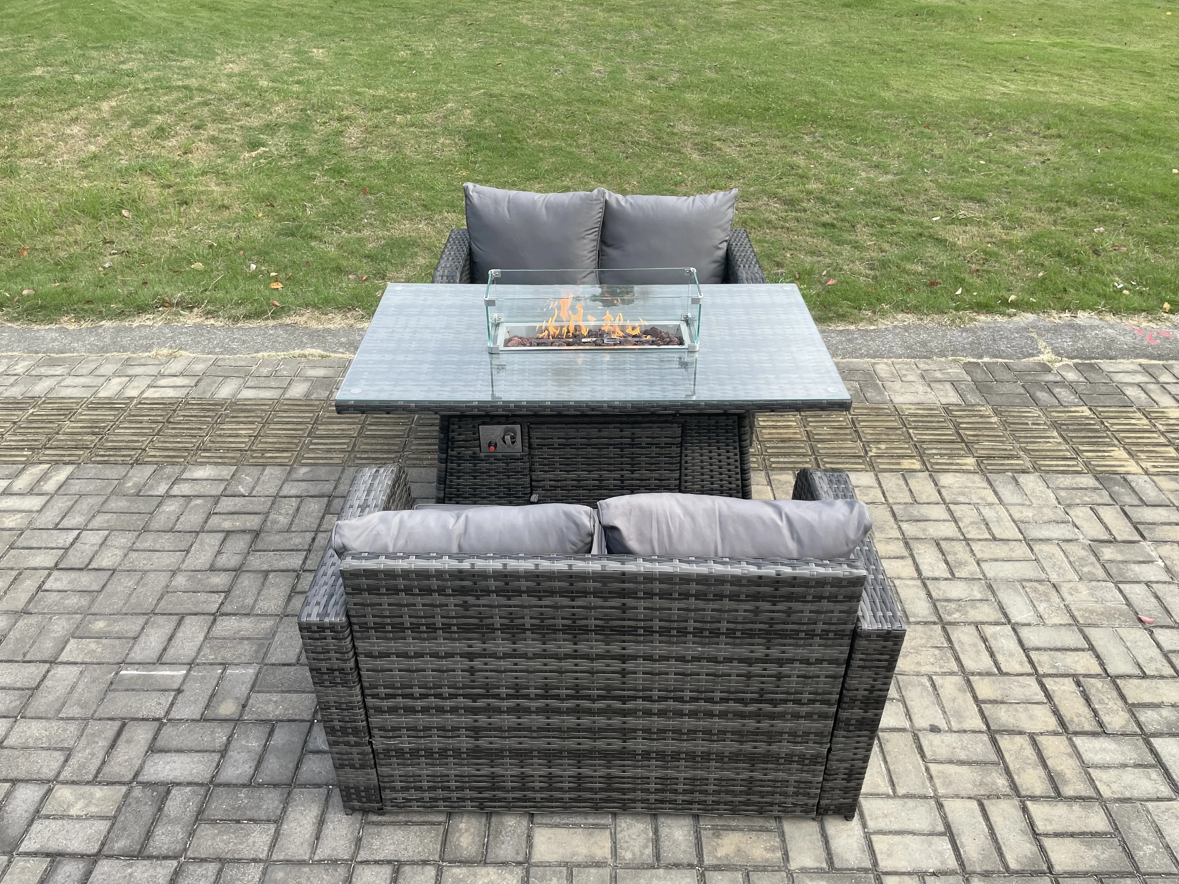 4-Sitzer Gartengarnitur Polyrattan mit Gas Feuerstelle