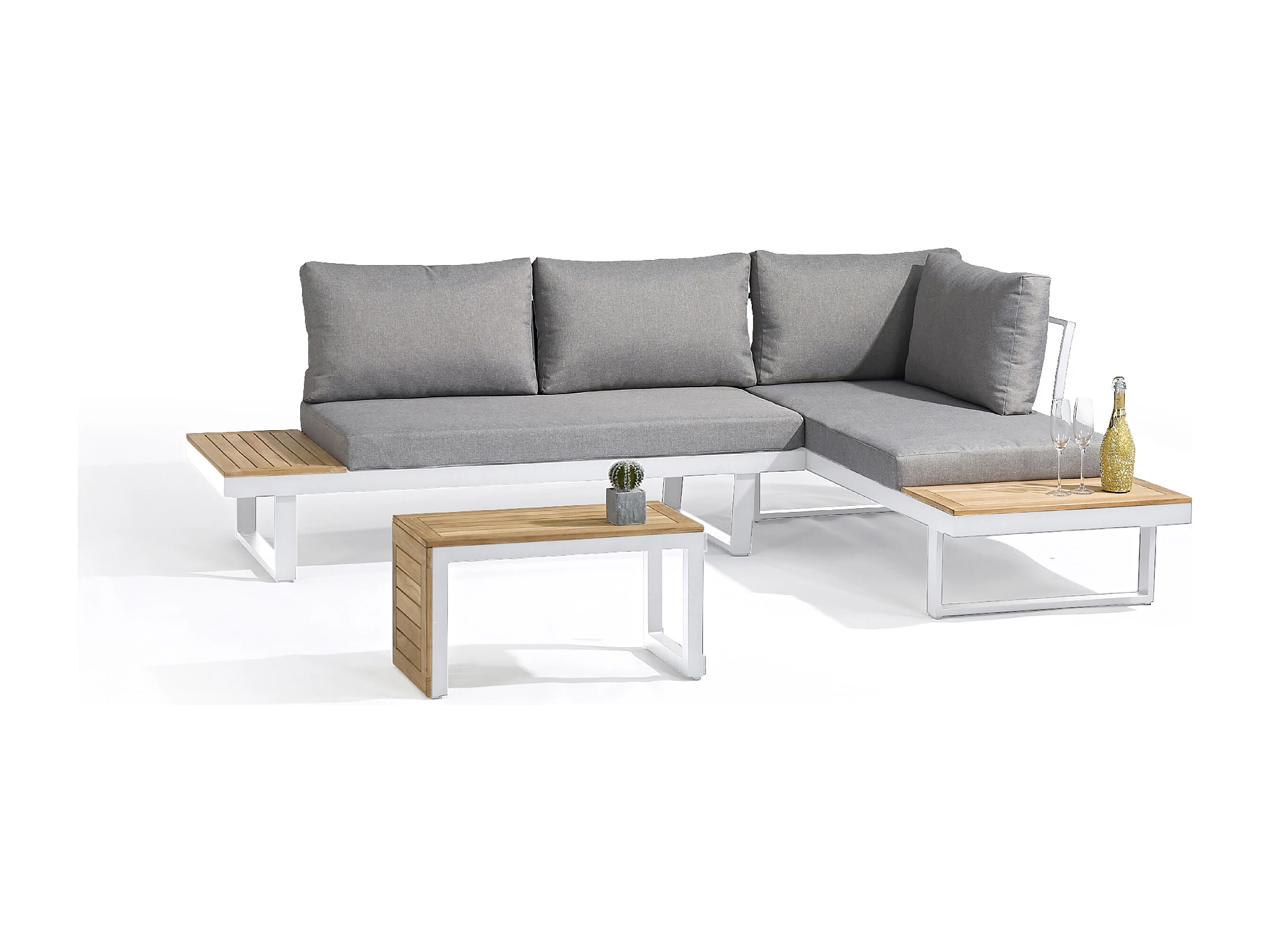 4-Sitzer-Gartenmöbel, Aluminium und Akazienholz