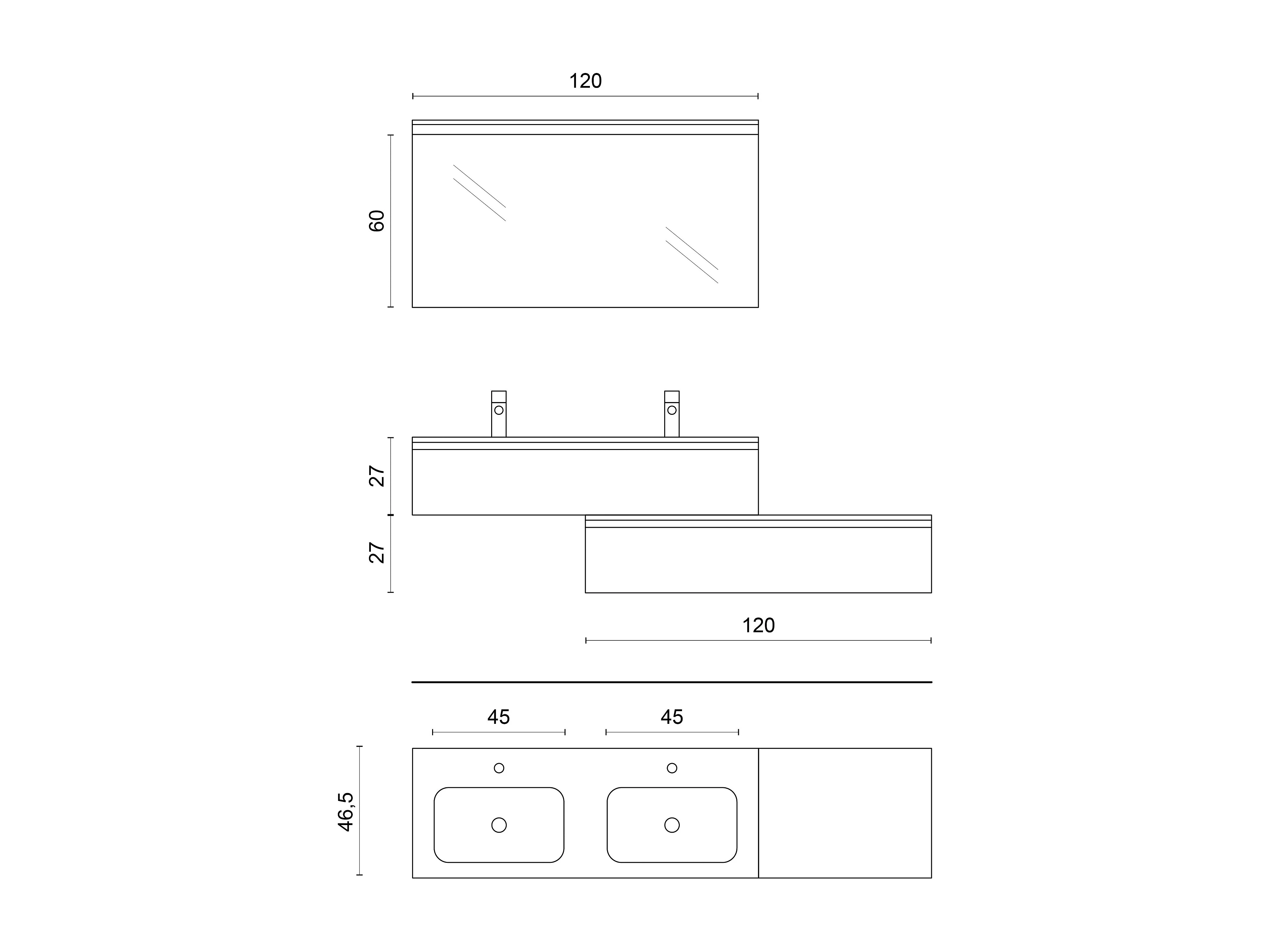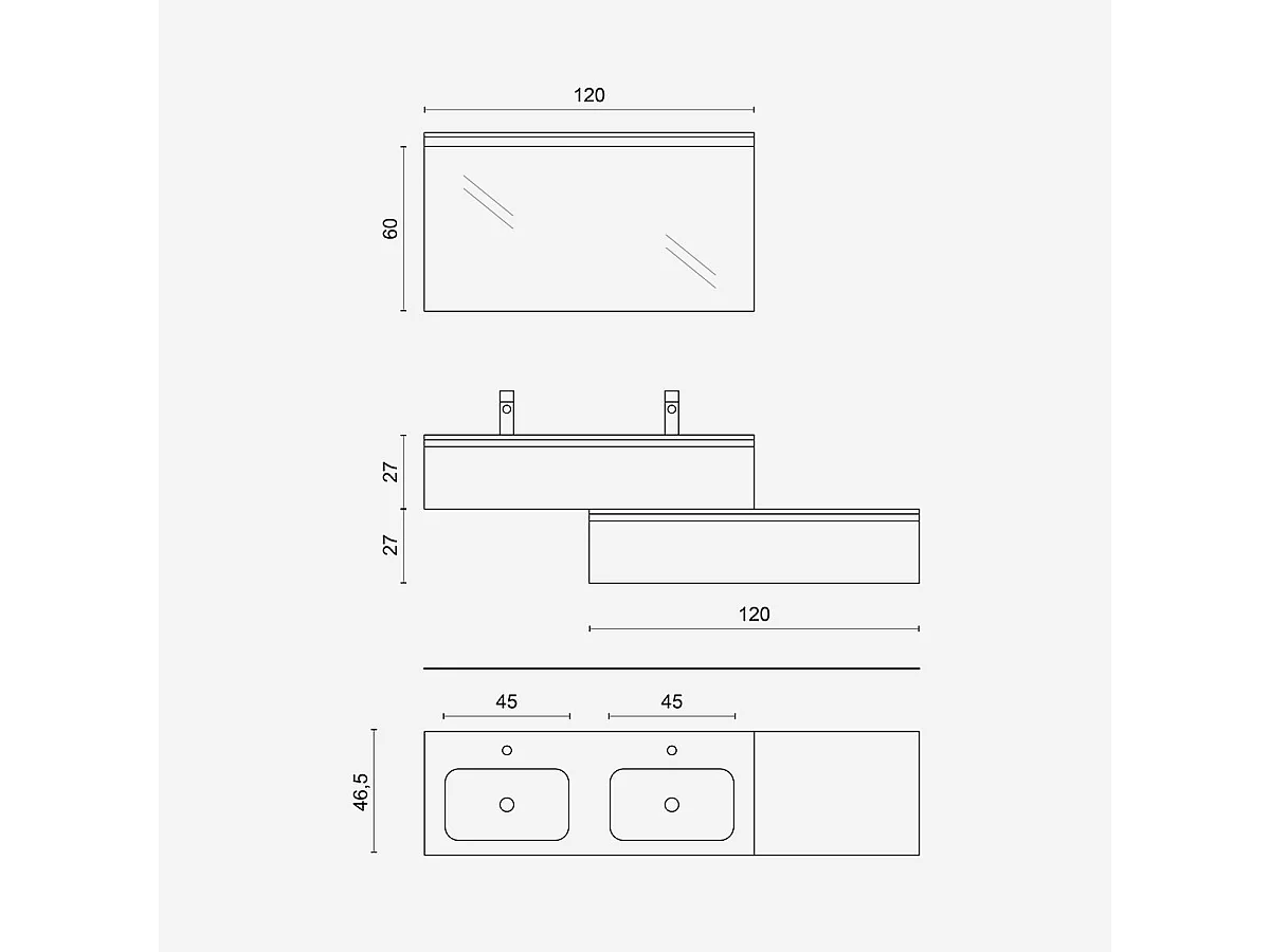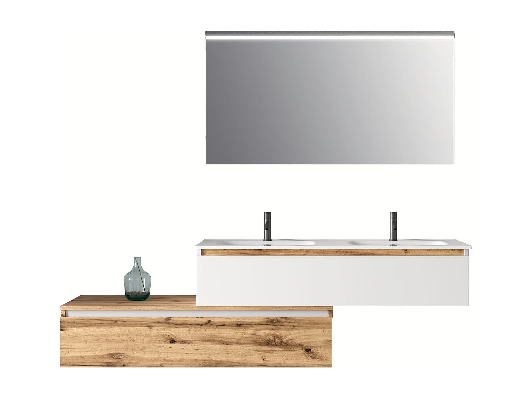 Doppelwaschbecken Badezimmer-Mobile mit LED-Spiegel, 4-teilig Astra - Eiche