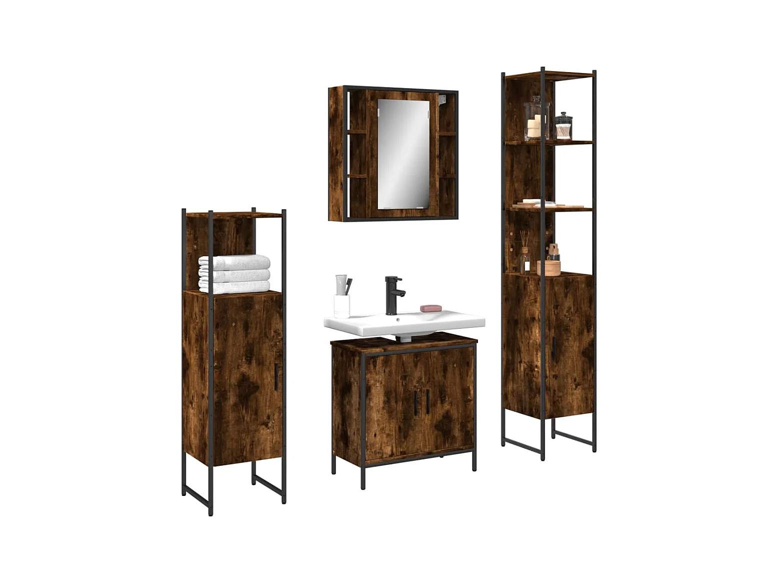 4-tlg. Badmöbel-Set Räuchereiche Holzwerkstoff