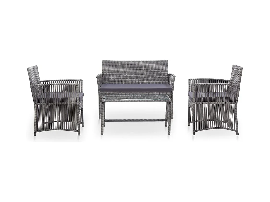 4-tlg. Garten-Lounge-Set mit Auflage Poly Rattan Anthrazit
