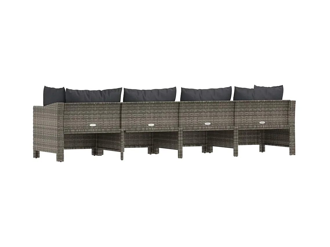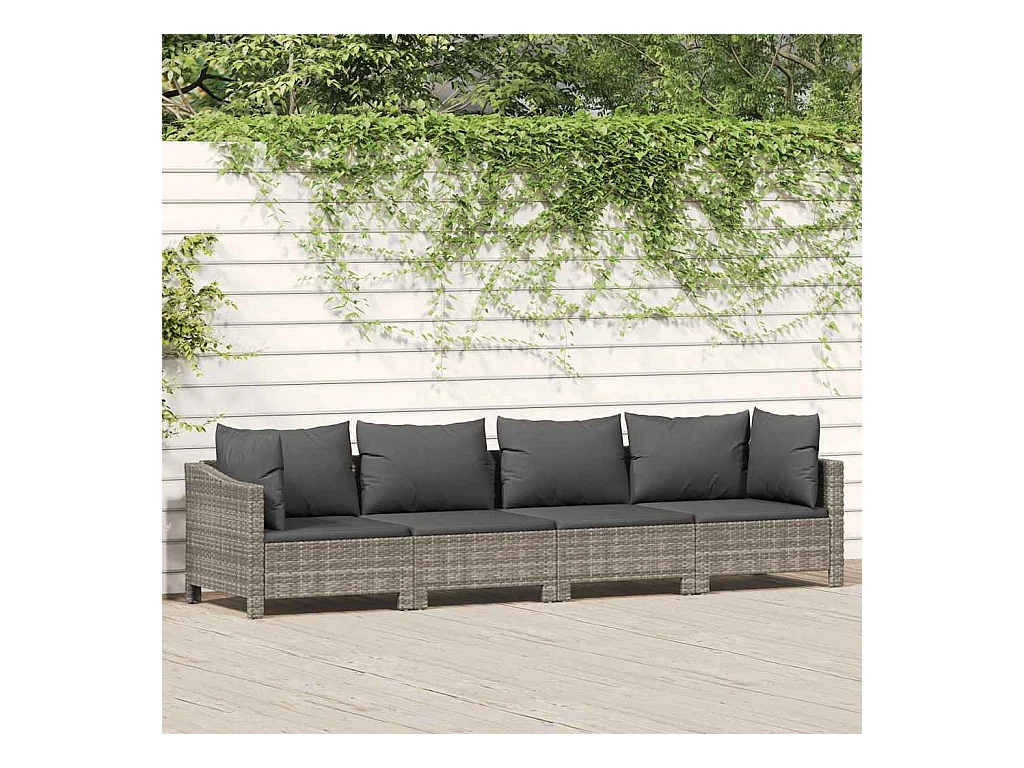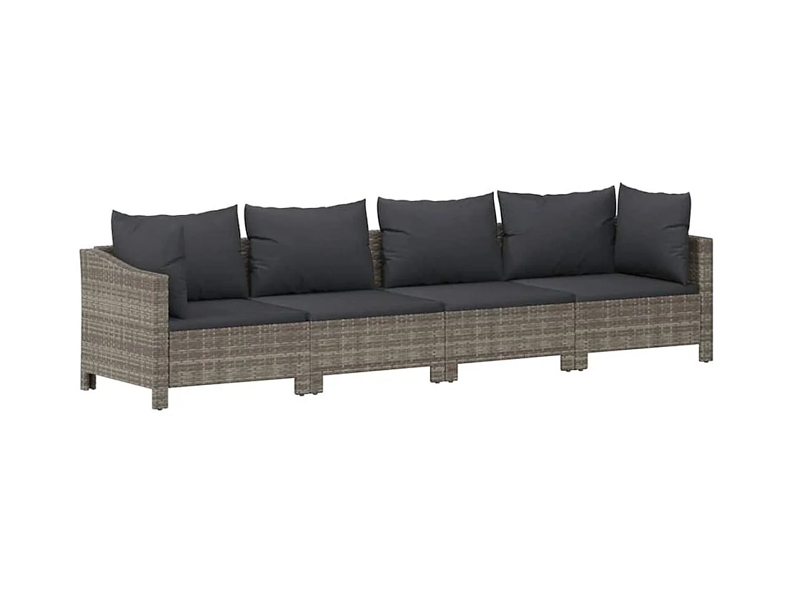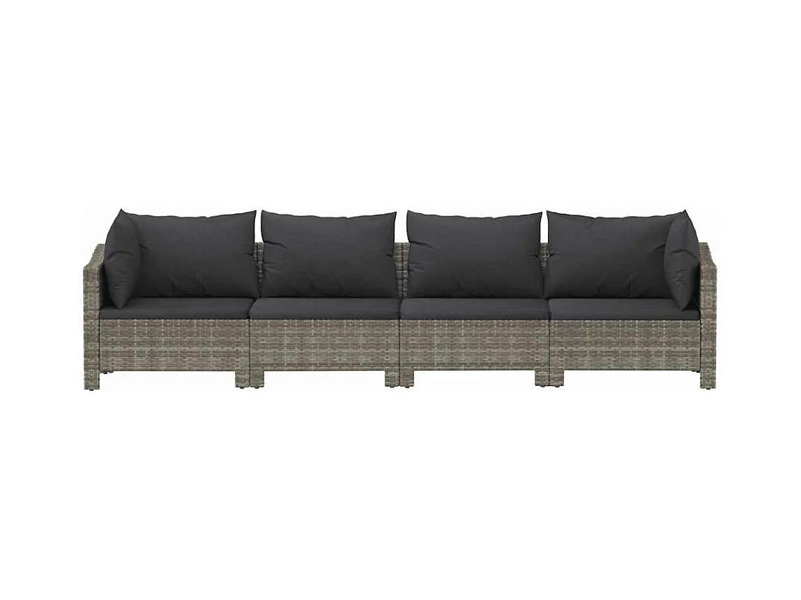 4-tlg. Garten-Lounge-Set mit Kissen Grau Poly Rattan