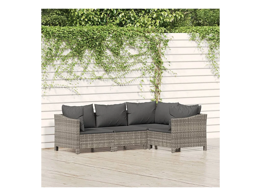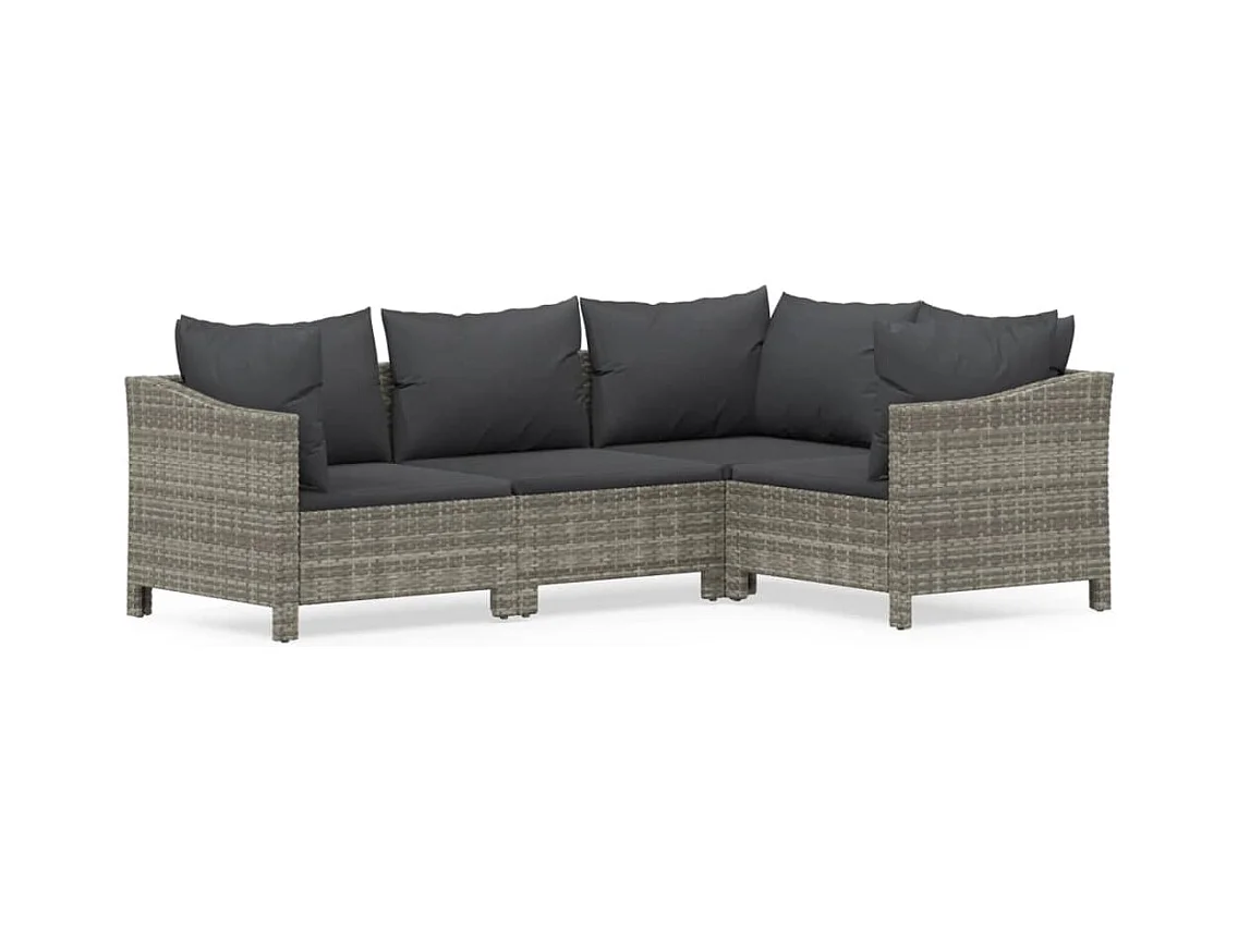 4-tlg. Garten-Lounge-Set mit Kissen Grau Poly Rattan