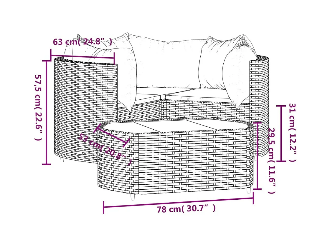 4-tlg. Garten-Lounge-Set mit Kissen Grau Poly Rattan