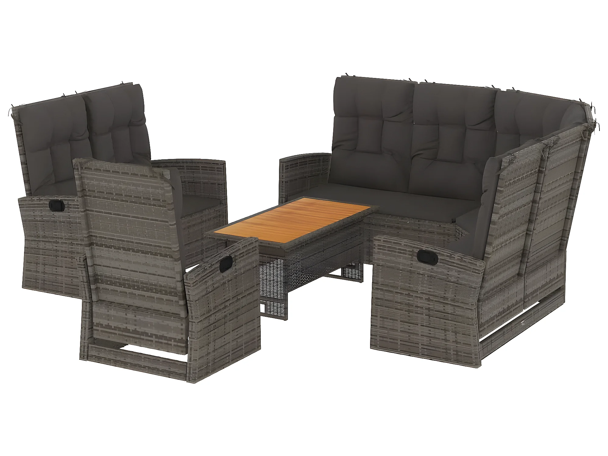 4-tlg. Garten-Lounge-Set mit Kissen Grau Poly Rattan