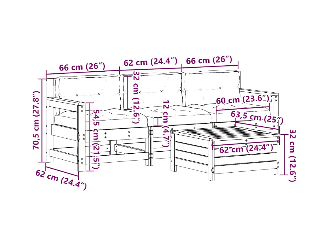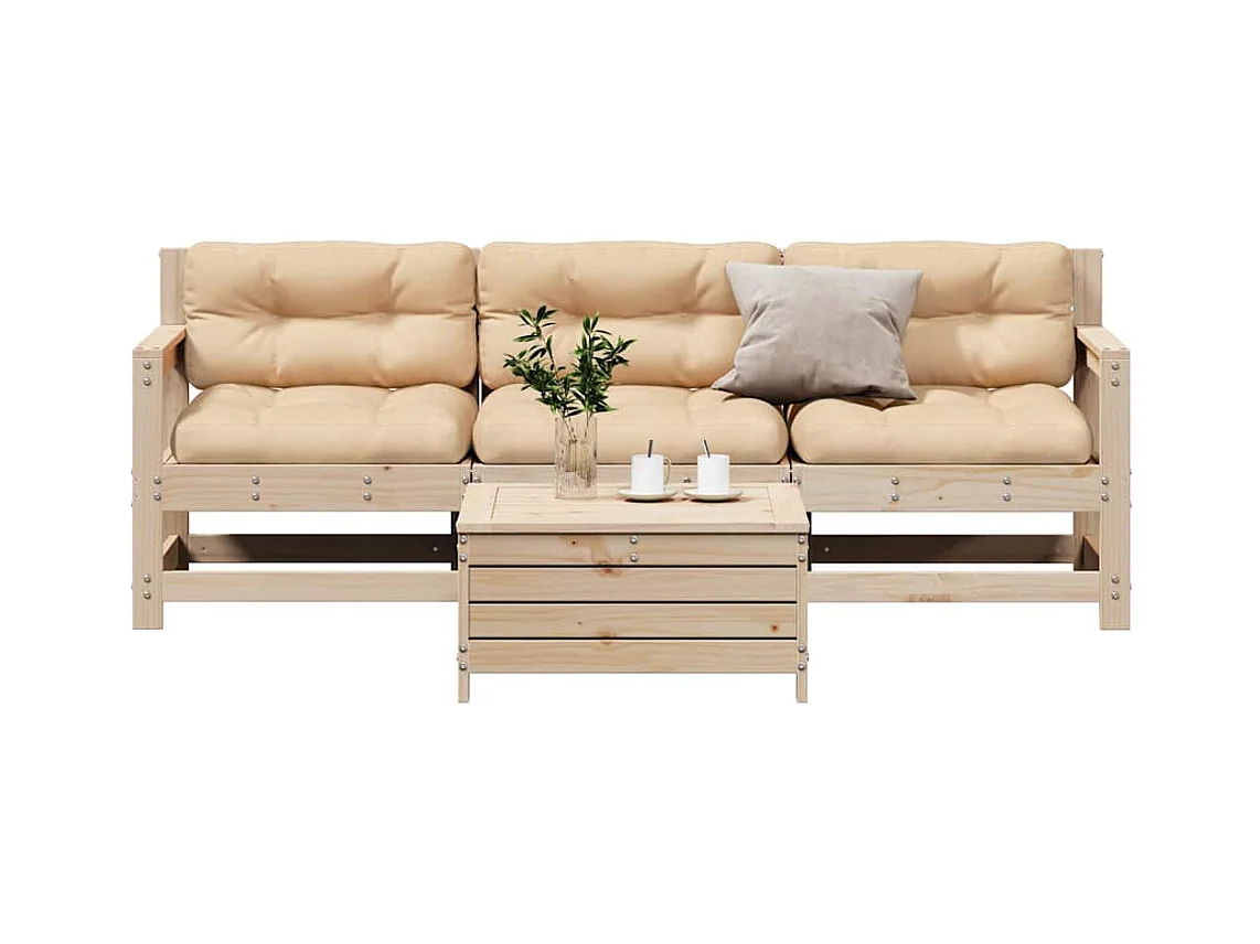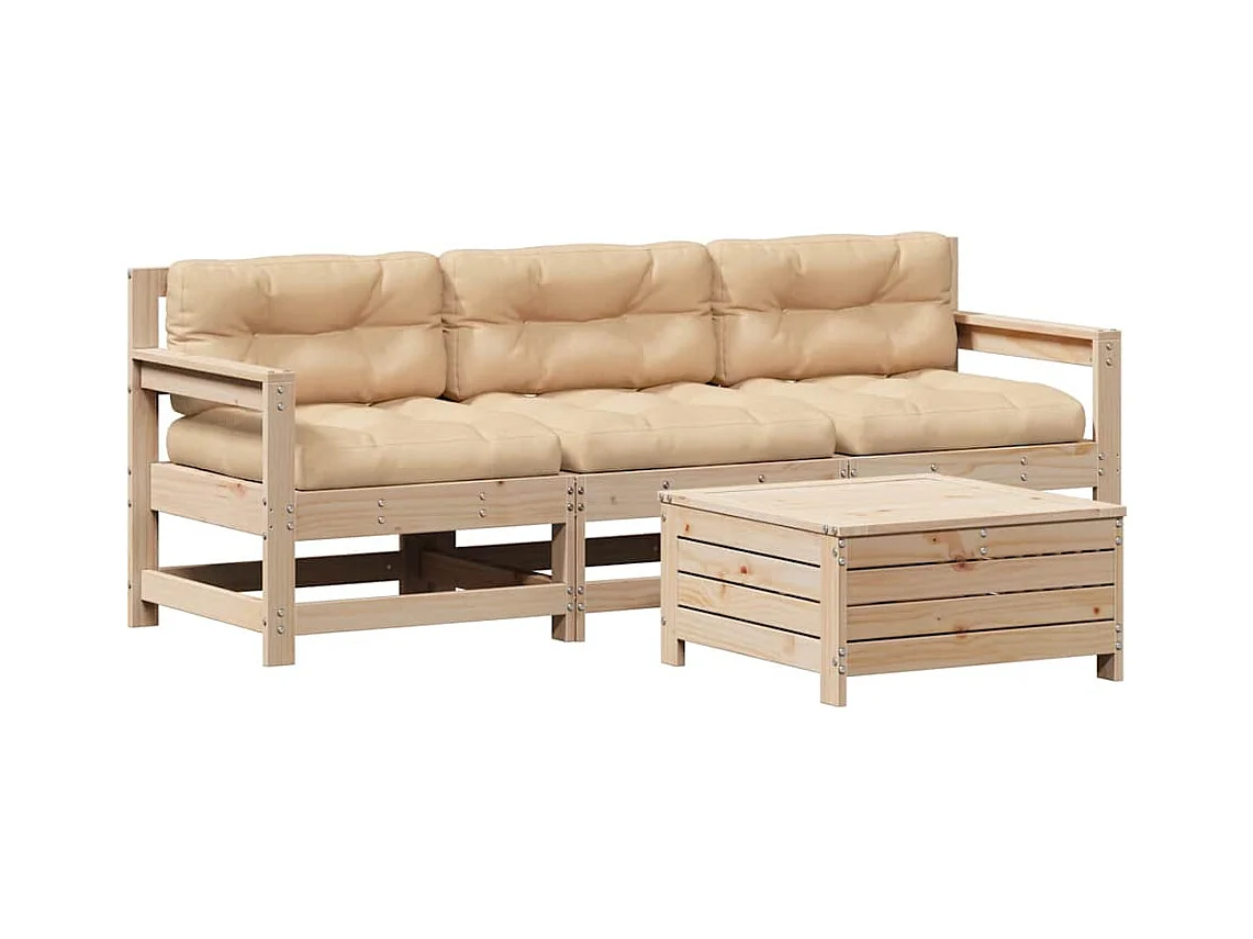 4-tlg. Garten-Lounge-Set mit Kissen Massivholz Kiefer