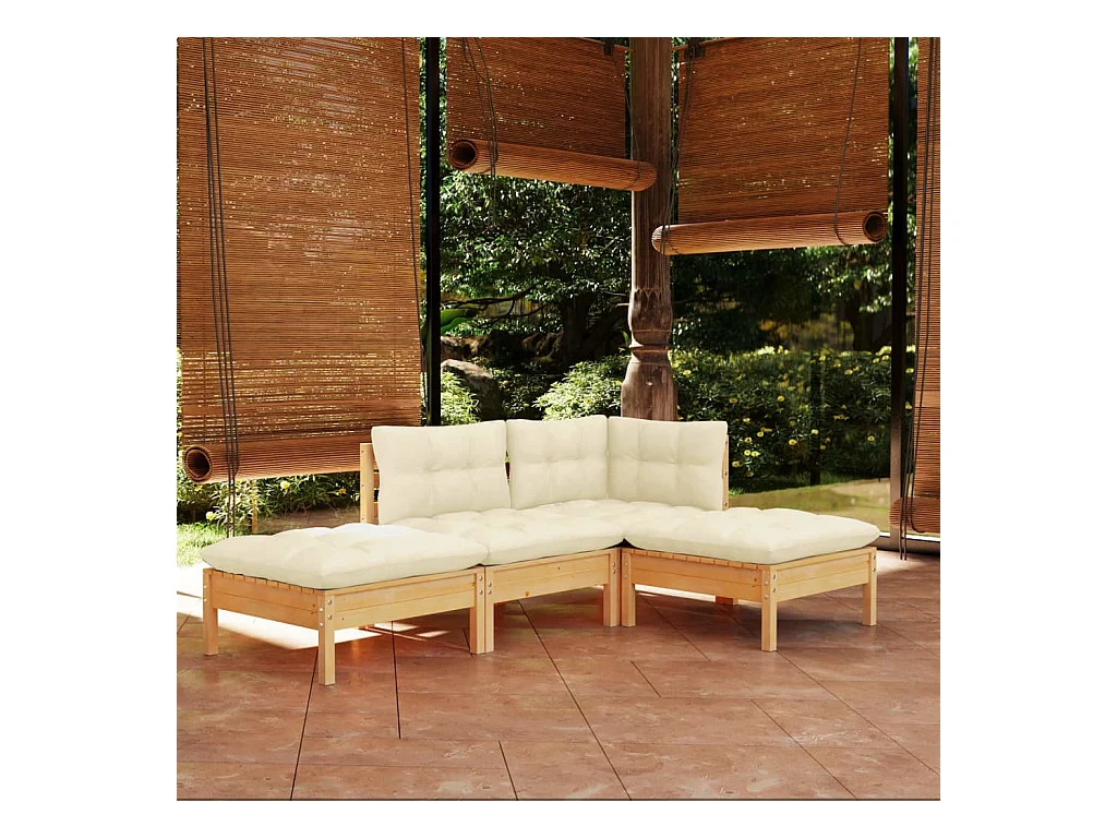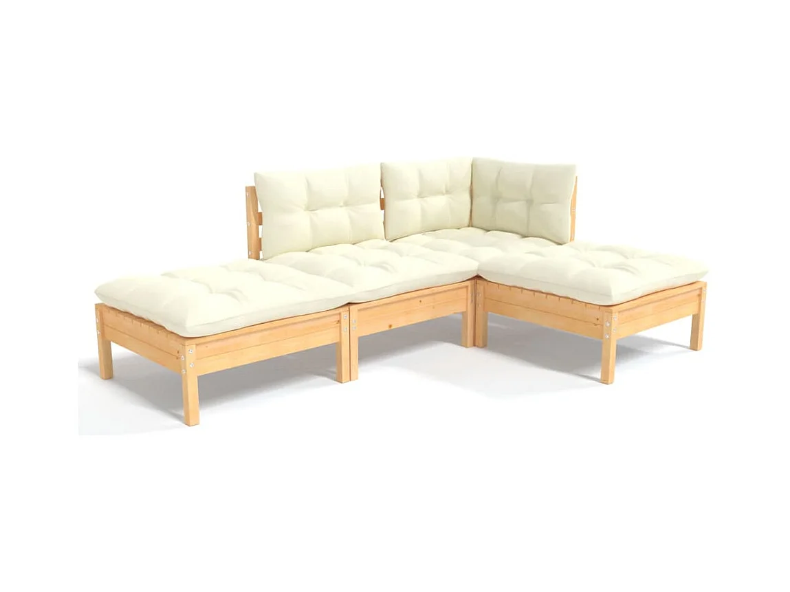 4-tlg. Garten-Sitzgruppe | Garten-Lounge-Set mit Creme Kissen Kiefer Massivholz -GKD775521