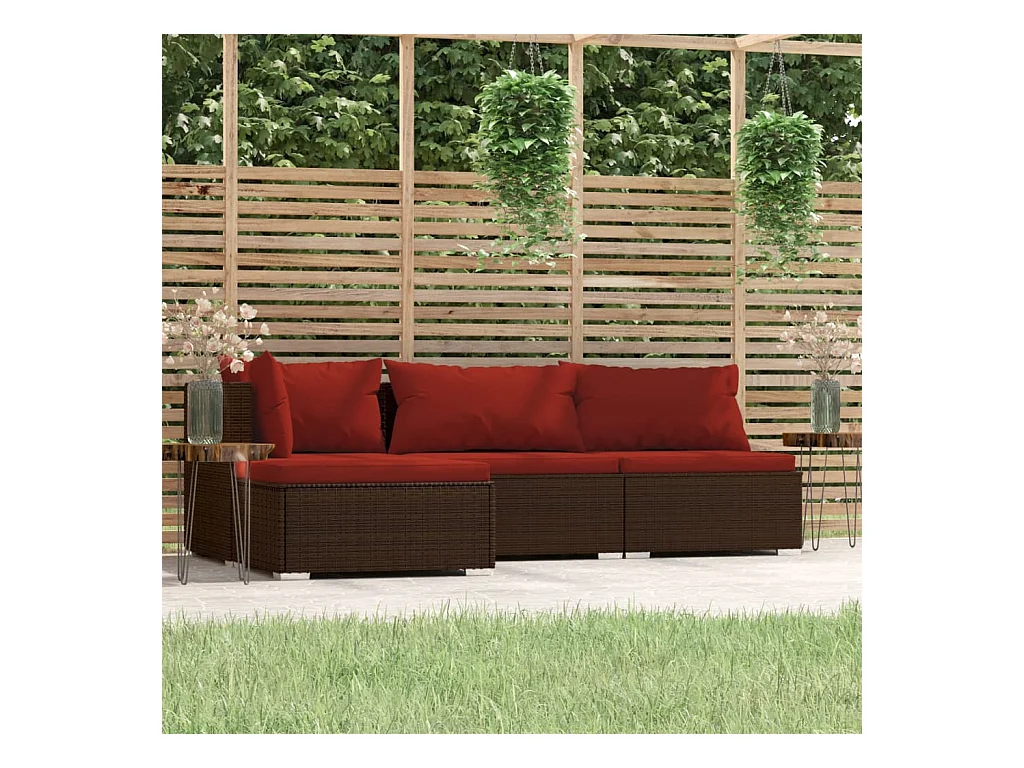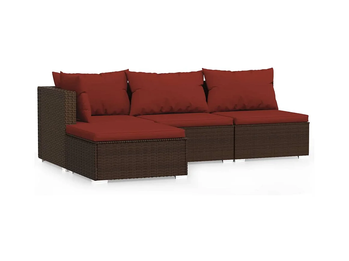 4-tlg. Garten-Sitzgruppe | Garten-Lounge-Set mit Kissen Braun Poly Rattan -GKD584294