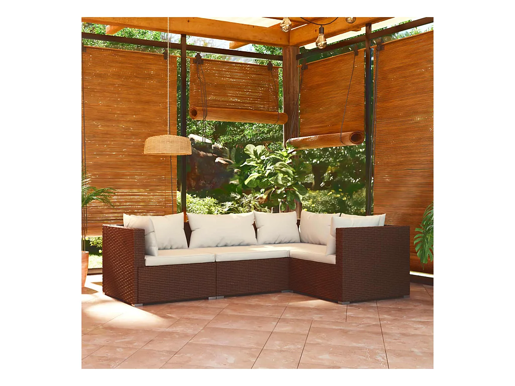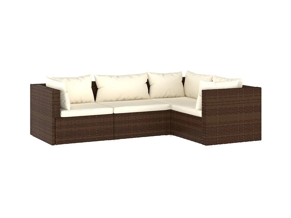 4-tlg. Garten-Sitzgruppe | Garten-Lounge-Set mit Kissen Poly Rattan Braun -GKD996604