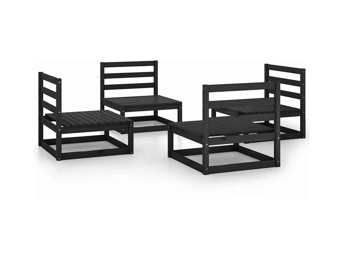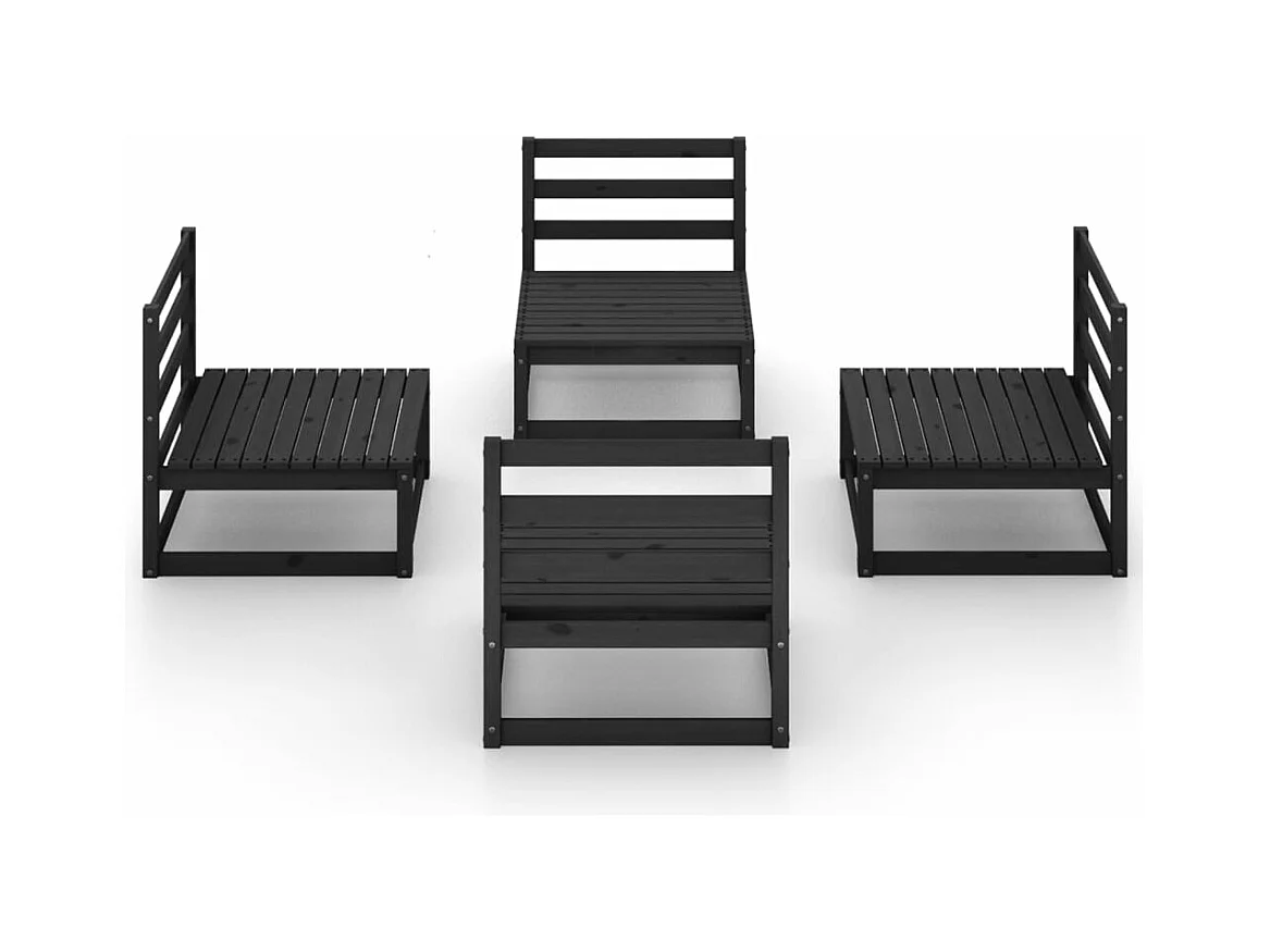 4-tlg. Garten-Sitzgruppe | Garten-Lounge-Set Schwarz Massivholz Kiefer -GKD760381