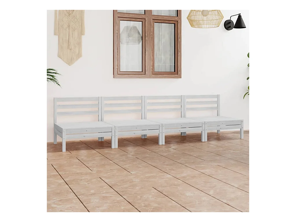 4-tlg. Garten-Sitzgruppe | Garten-Lounge-Set Weiß Kiefer Massivholz -GKD419504