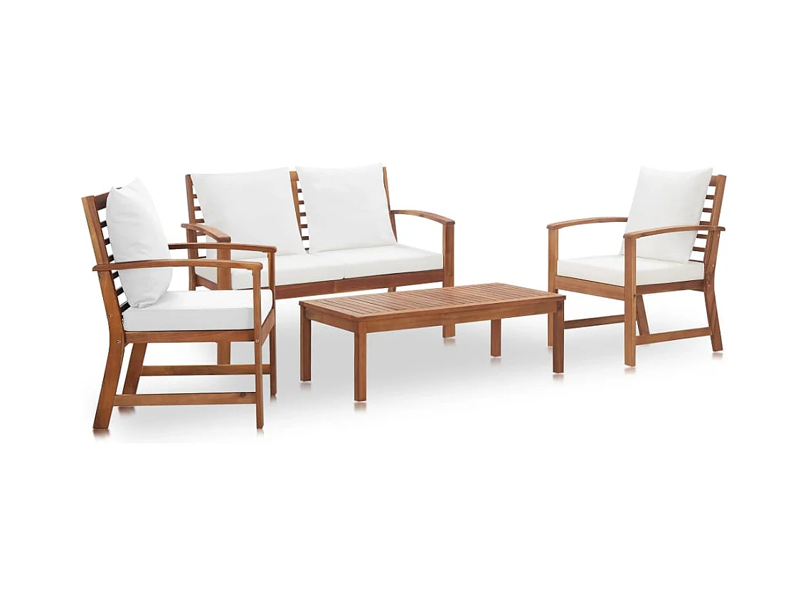 4-tlg. Garten-Sitzgruppe: Sofa + Tisch | Garten-Lounge-Set mit Auflagen Massivholz Akazie -GKD386622