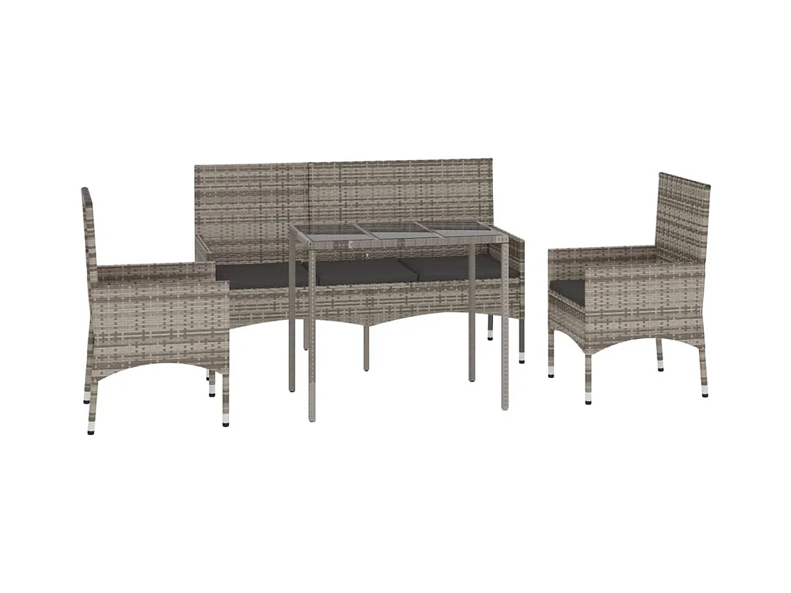 4-tlg. Garten-Sitzgruppe: Sofa + Tisch | Garten-Lounge-Set mit Kissen Grau Poly Rattan -GKD396022