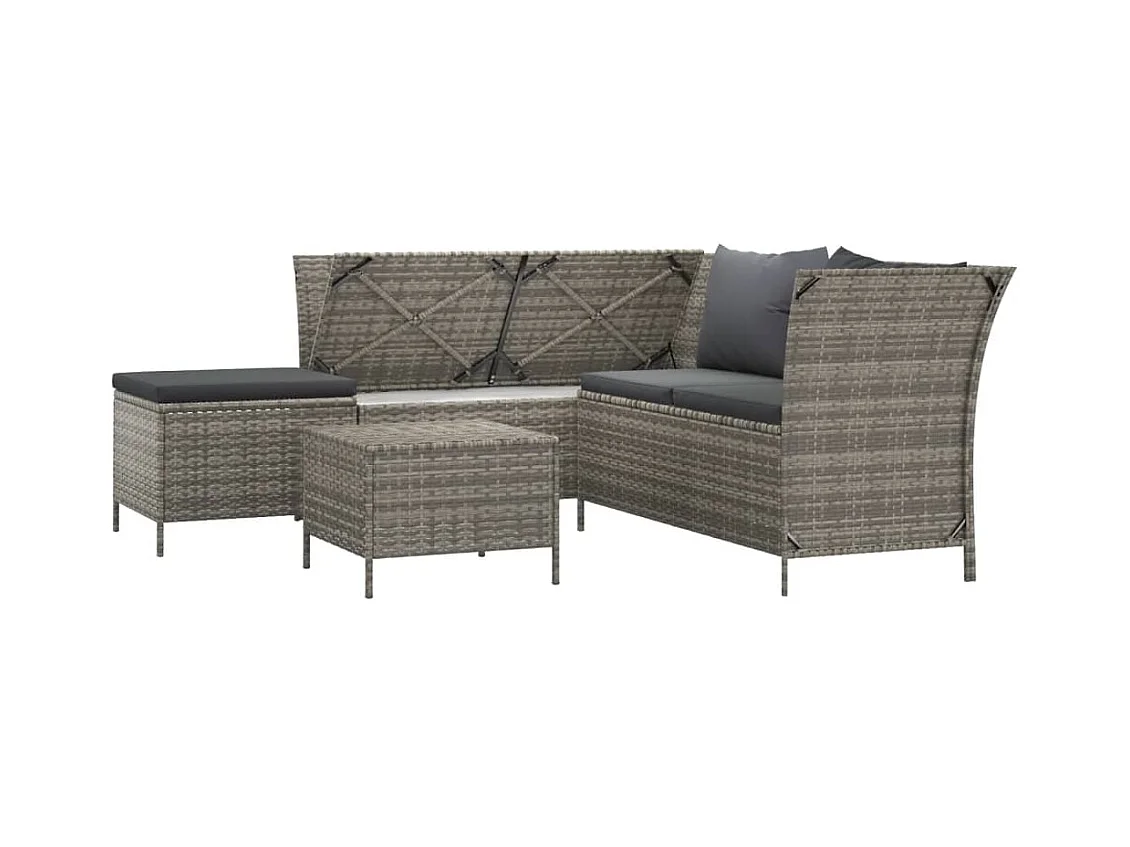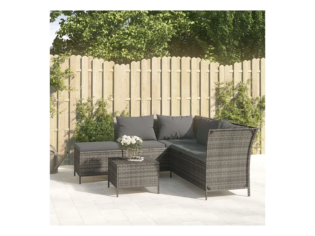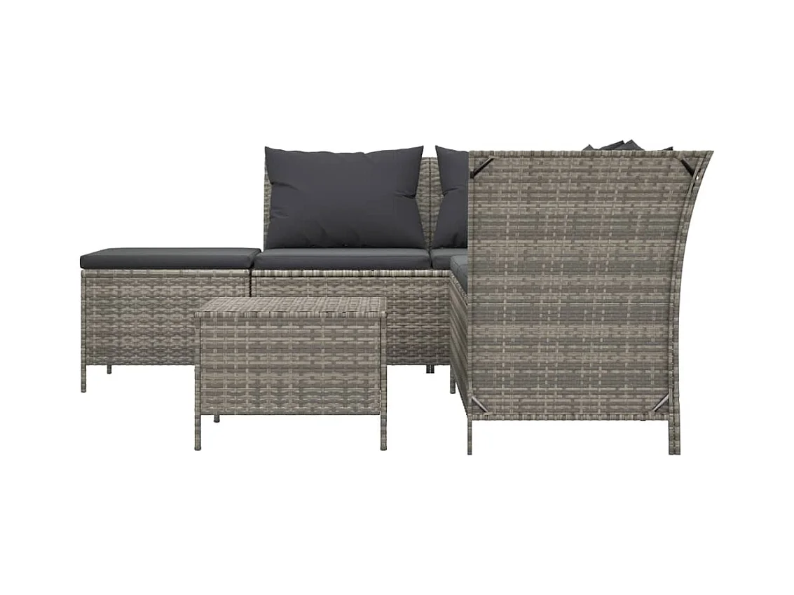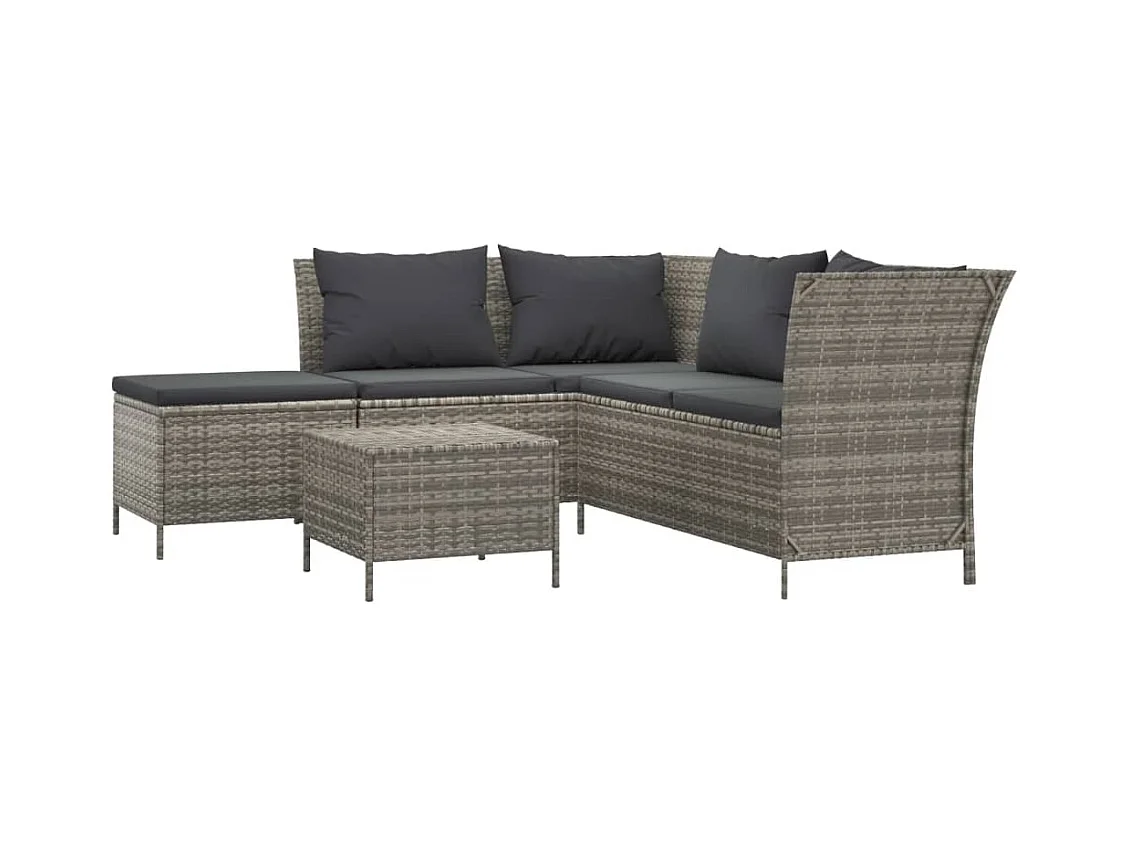 4-tlg. Garten-Sitzgruppe: Sofa + Tisch | Garten-Lounge-Set mit Kissen Grau Poly Rattan -GKD536501