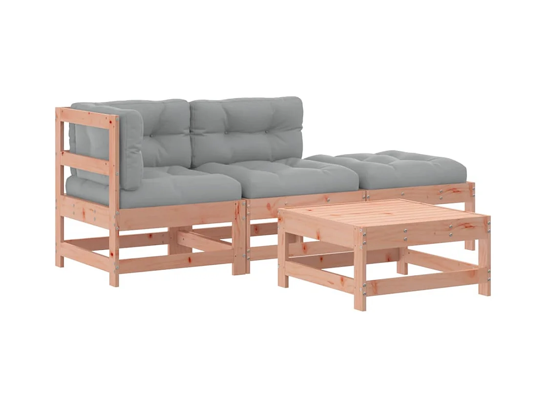 4-tlg. Garten-Sitzgruppe: Sofa + Tisch | Garten-Lounge-Set mit Kissen Massivholz Douglasie -GKD193783