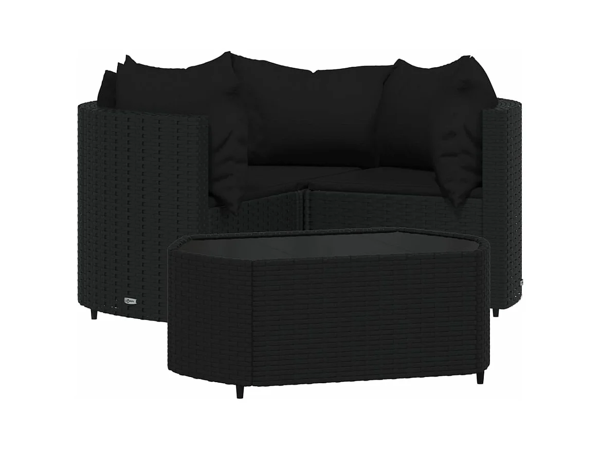 4-tlg. Garten-Sitzgruppe: Sofa + Tisch | Garten-Lounge-Set mit Kissen Schwarz Poly Rattan -GKD461526
