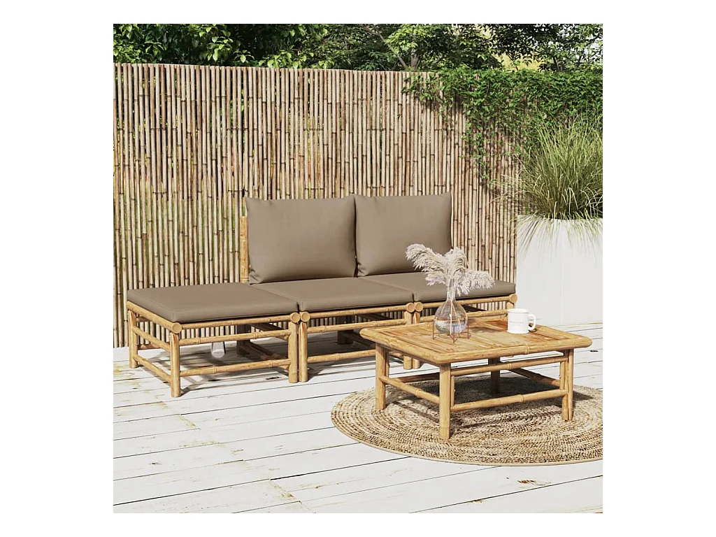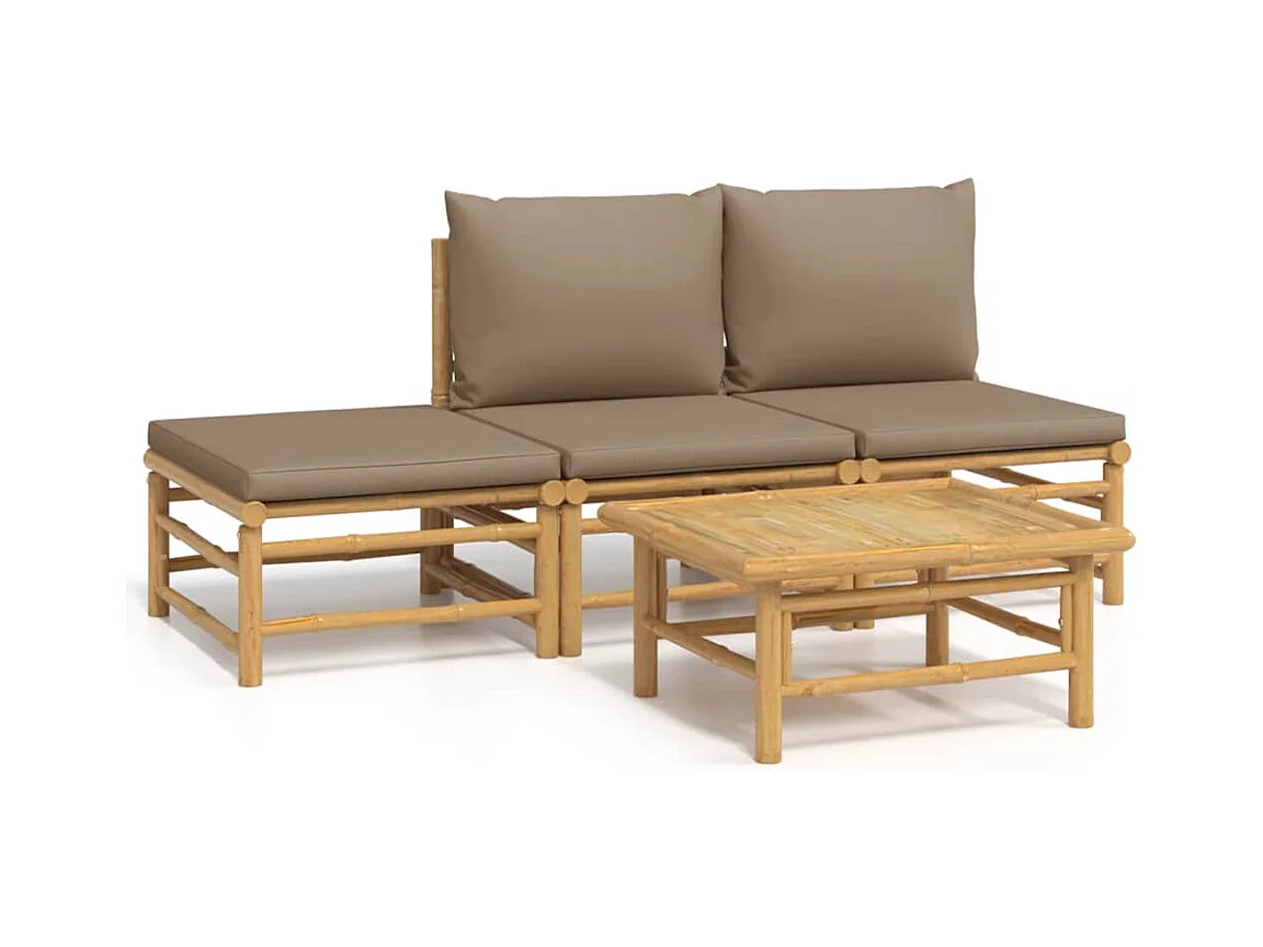 4-tlg. Garten-Sitzgruppe: Sofa + Tisch | Garten-Lounge-Set mit Taupe Kissen Bambus -GKD356417