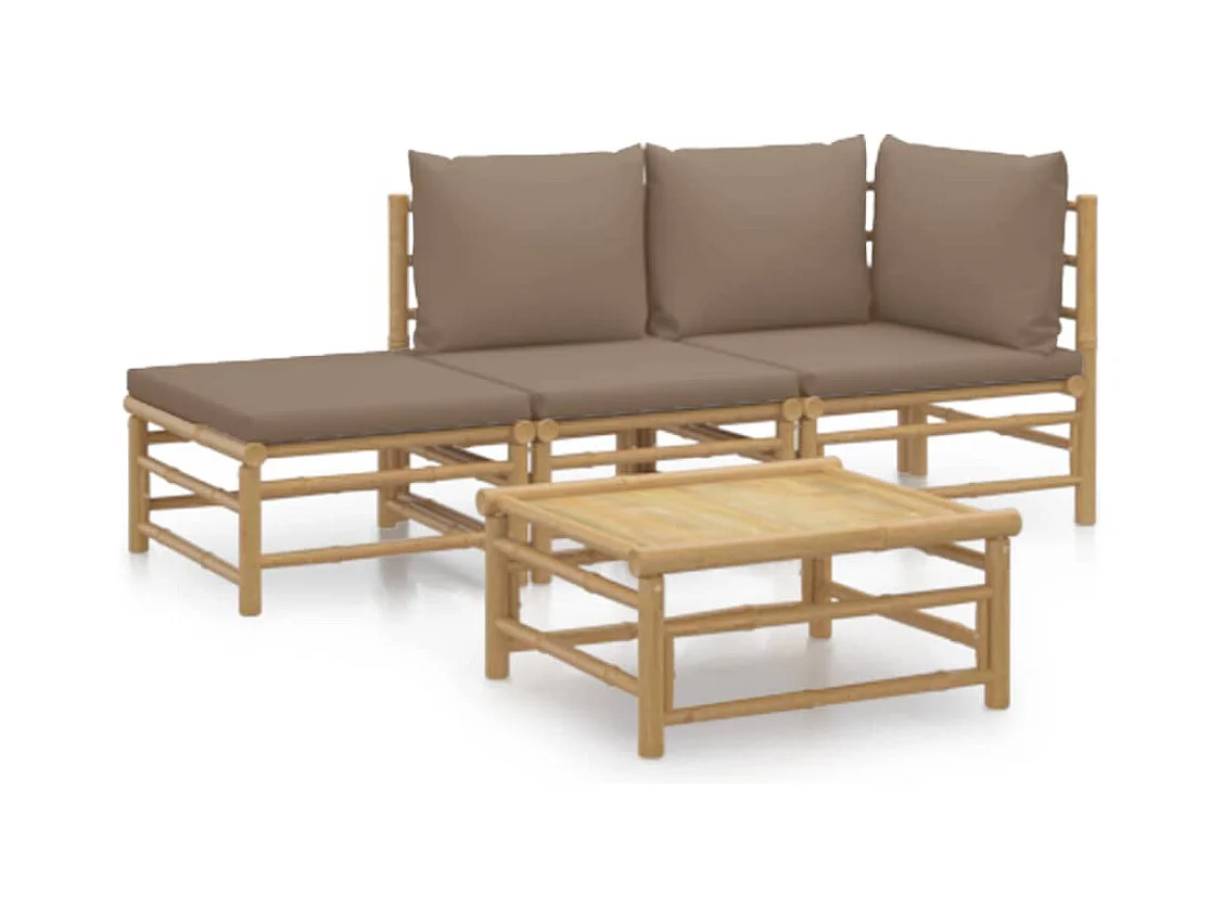 4-tlg. Garten-Sitzgruppe: Sofa + Tisch | Garten-Lounge-Set mit Taupe Kissen Bambus -GKD680926