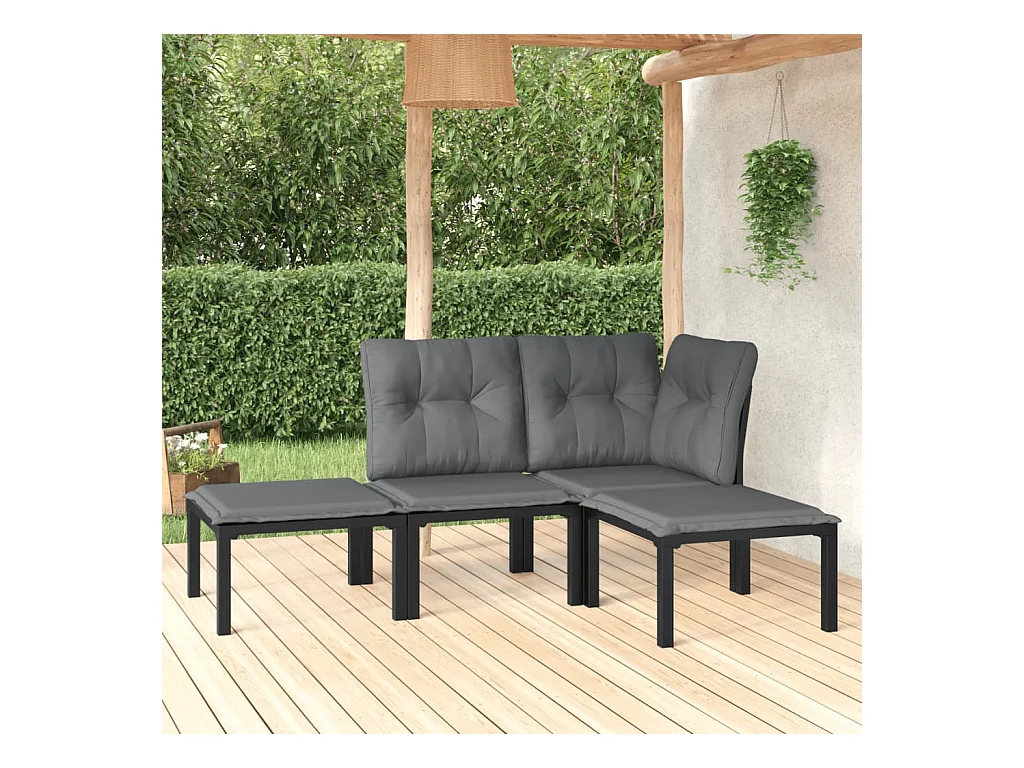 4-tlg. Garten-Sitzgruppe: Sofa + Tisch | Garten-Lounge-Set Schwarz und Grau Poly Rattan -GKD544768