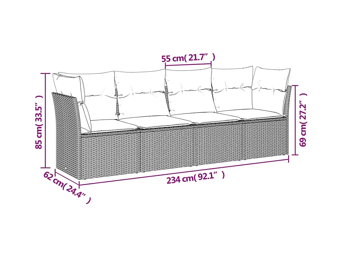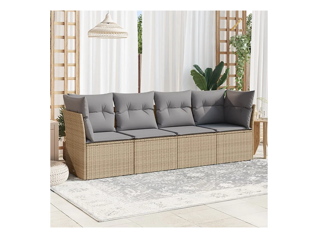 4-tlg. Garten-Sofagarnitur,Gartenmöbel-Set mit Kissen Beige Poly Rattan -gkd156938