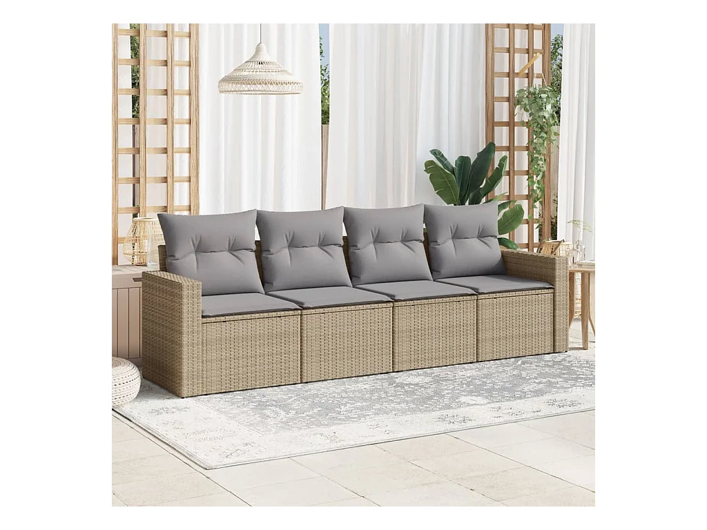 4-tlg. Garten-Sofagarnitur,Gartenmöbel-Set mit Kissen Beige Poly Rattan -gkd875107