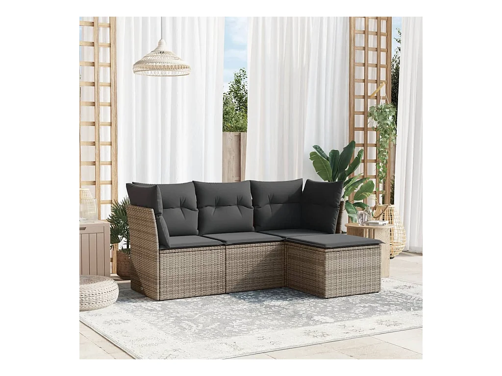 4-tlg. Garten-Sofagarnitur,Gartenmöbel-Set mit Kissen Grau Poly Rattan -gkd111234