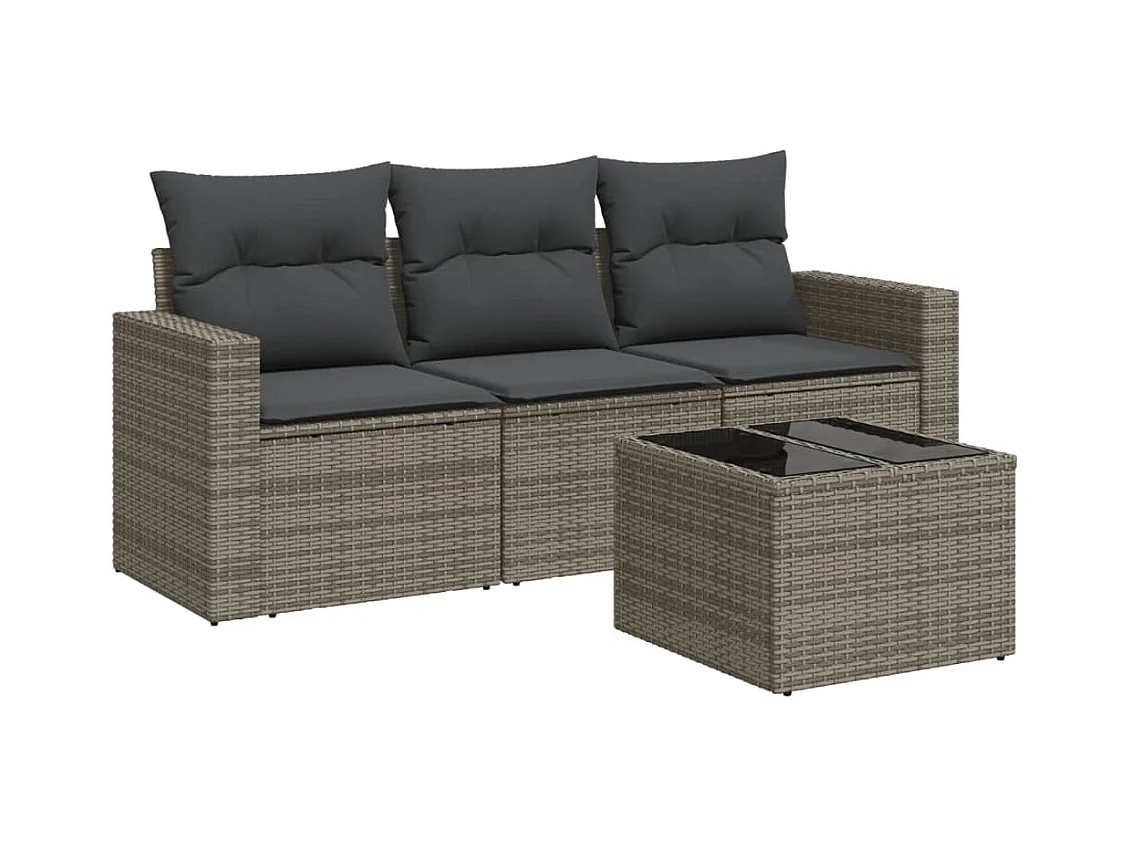 4-tlg. Garten-Sofagarnitur,Gartenmöbel-Set mit Kissen Grau Poly Rattan -gkd197588