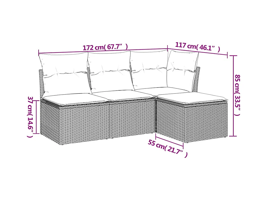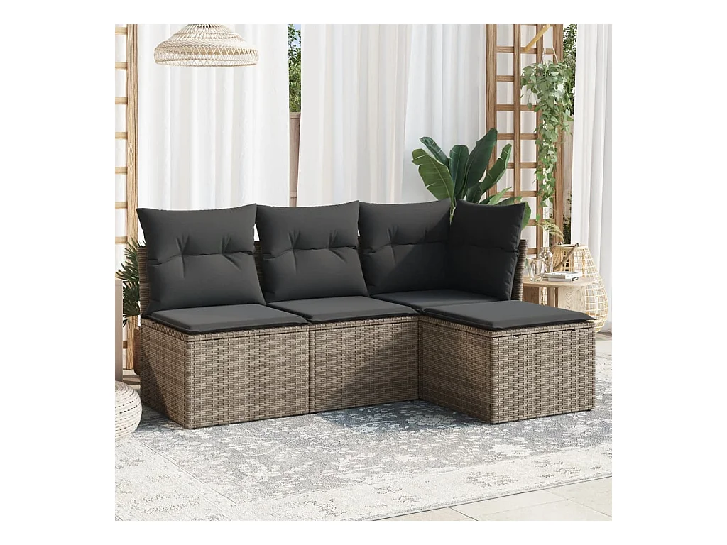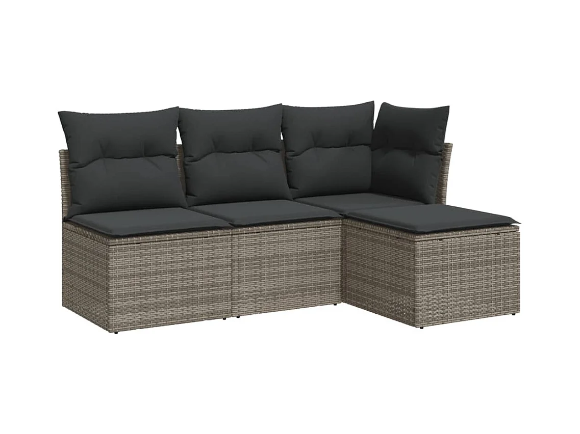 4-tlg. Garten-Sofagarnitur,Gartenmöbel-Set mit Kissen Grau Poly Rattan -gkd348217