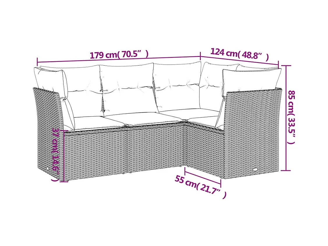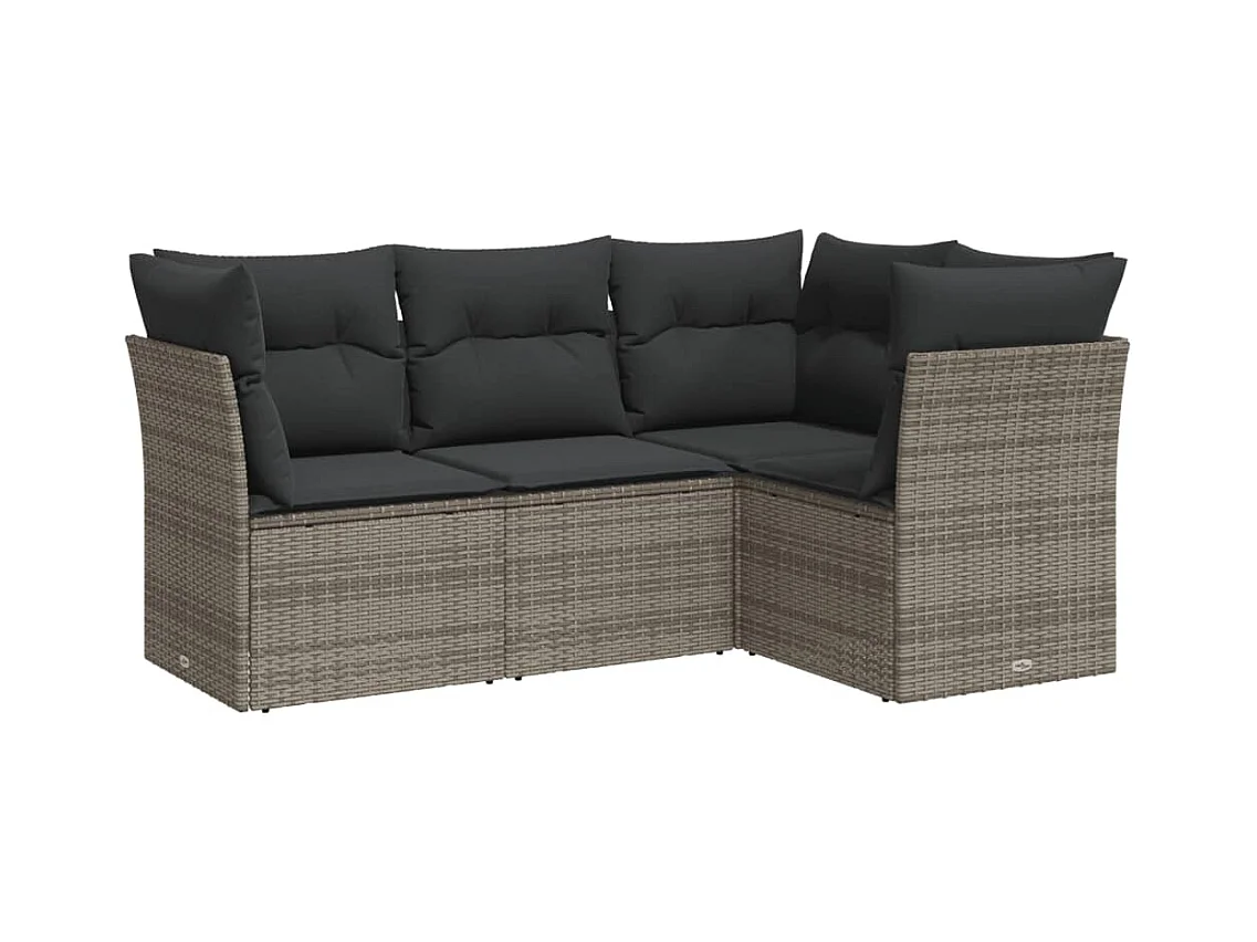 4-tlg. Garten-Sofagarnitur,Gartenmöbel-Set mit Kissen Grau Poly Rattan -gkd956318
