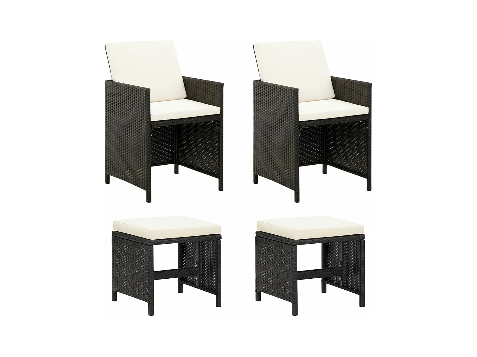 4-tlg. Gartenstuhl und Hocker Set Poly Rattan Schwarz