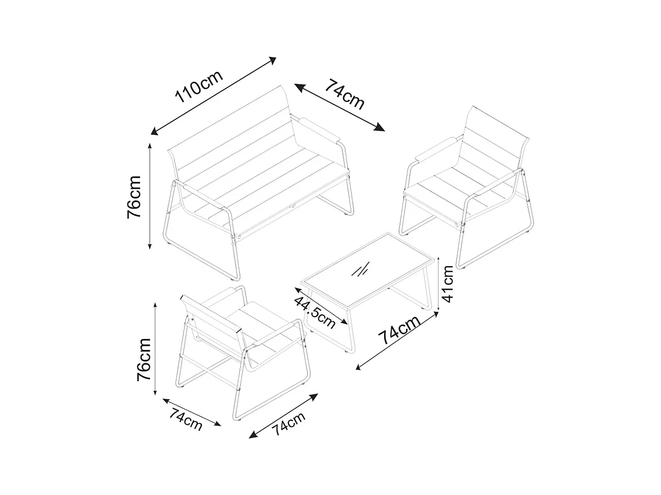 4 tlg. Set Lounge Balkon Gartenmöbel Lexila