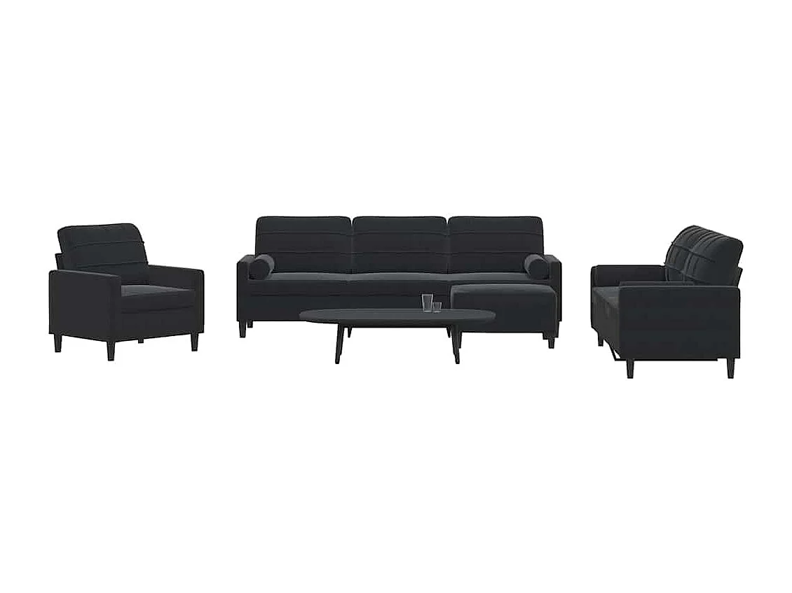 4-tlg. Sofagarnitur mit Kissen und Nackenrollen Schwarz Samt