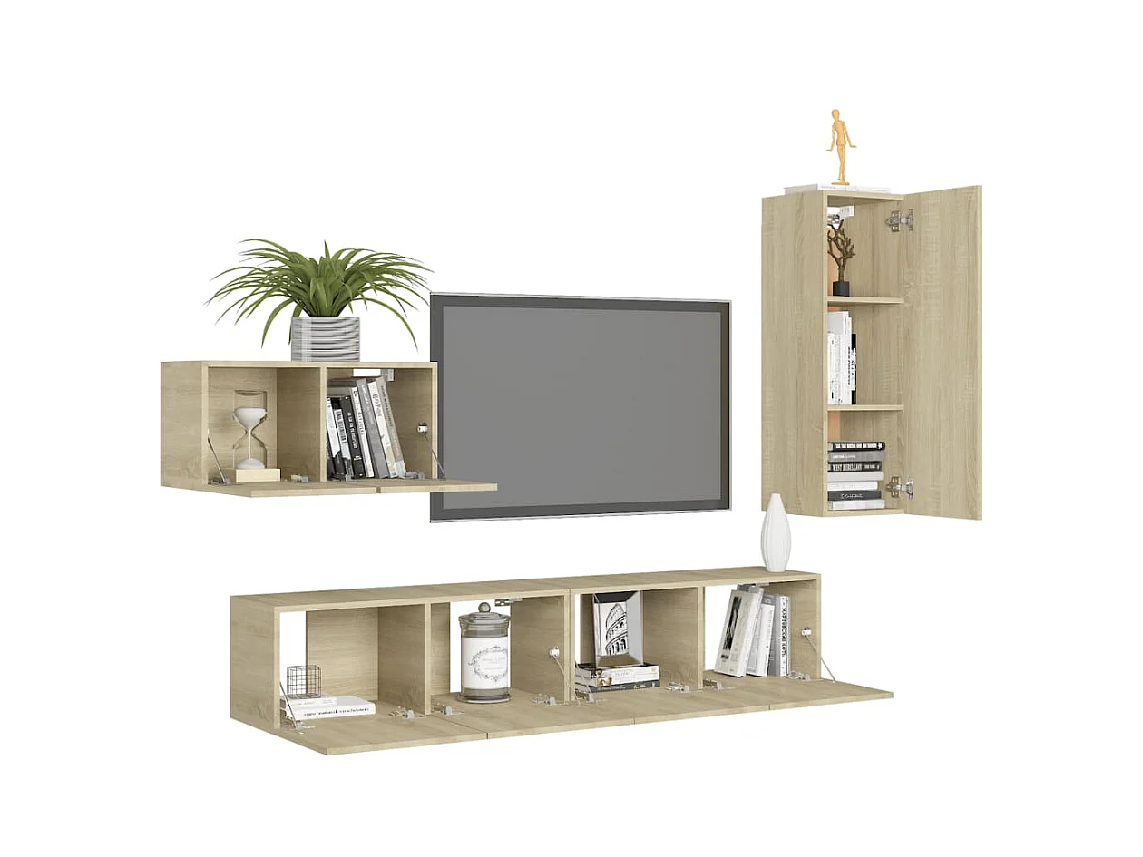 4-tlg. TV-Schrank-Set,TV-Möbel Sonoma-Eiche Holzwerkstoff -gkd493747