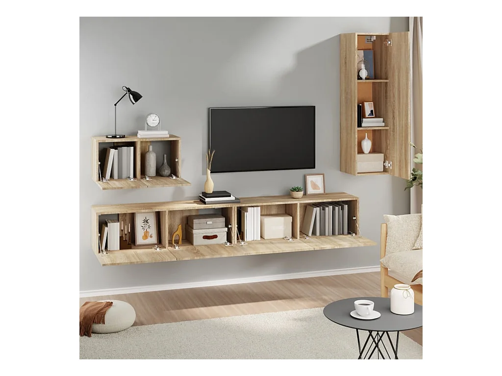 4-tlg. TV-Schrank-Set,TV-Möbel Sonoma-Eiche Holzwerkstoff -gkd895444