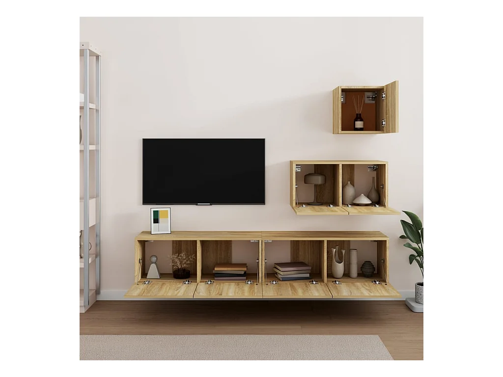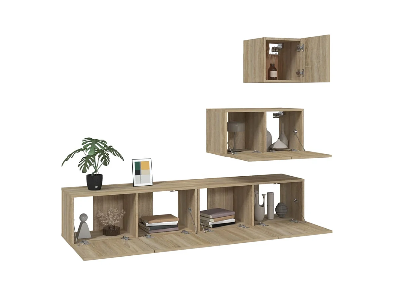 4-tlg. TV-Schrank-Set,TV-Möbel Sonoma-Eiche Holzwerkstoff -gkd968125