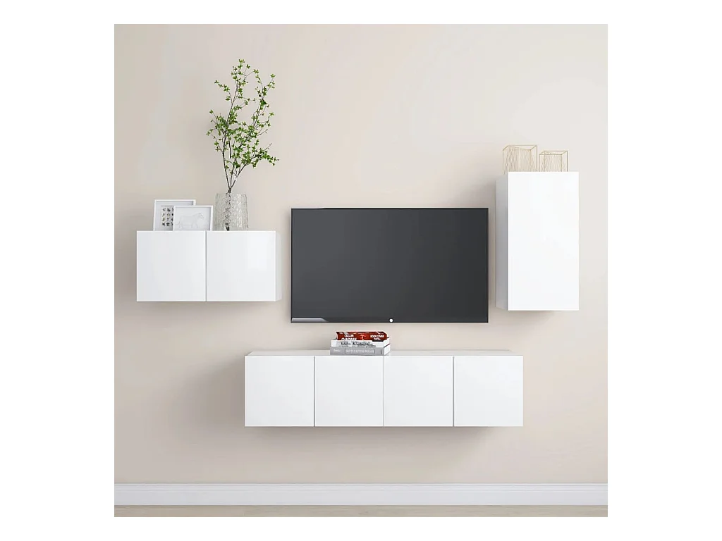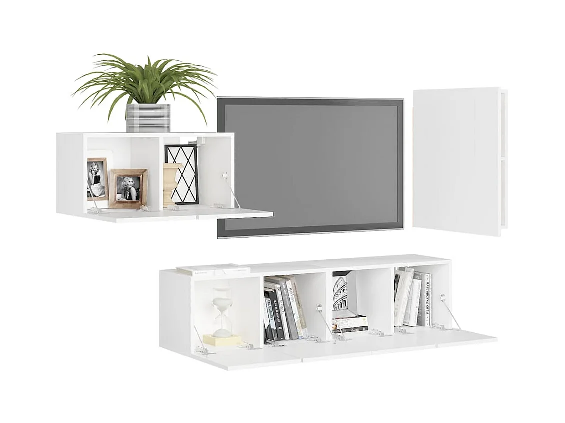 4-tlg. TV-Schrank-Set,TV-Möbel Weiß Holzwerkstoff -gkd566378