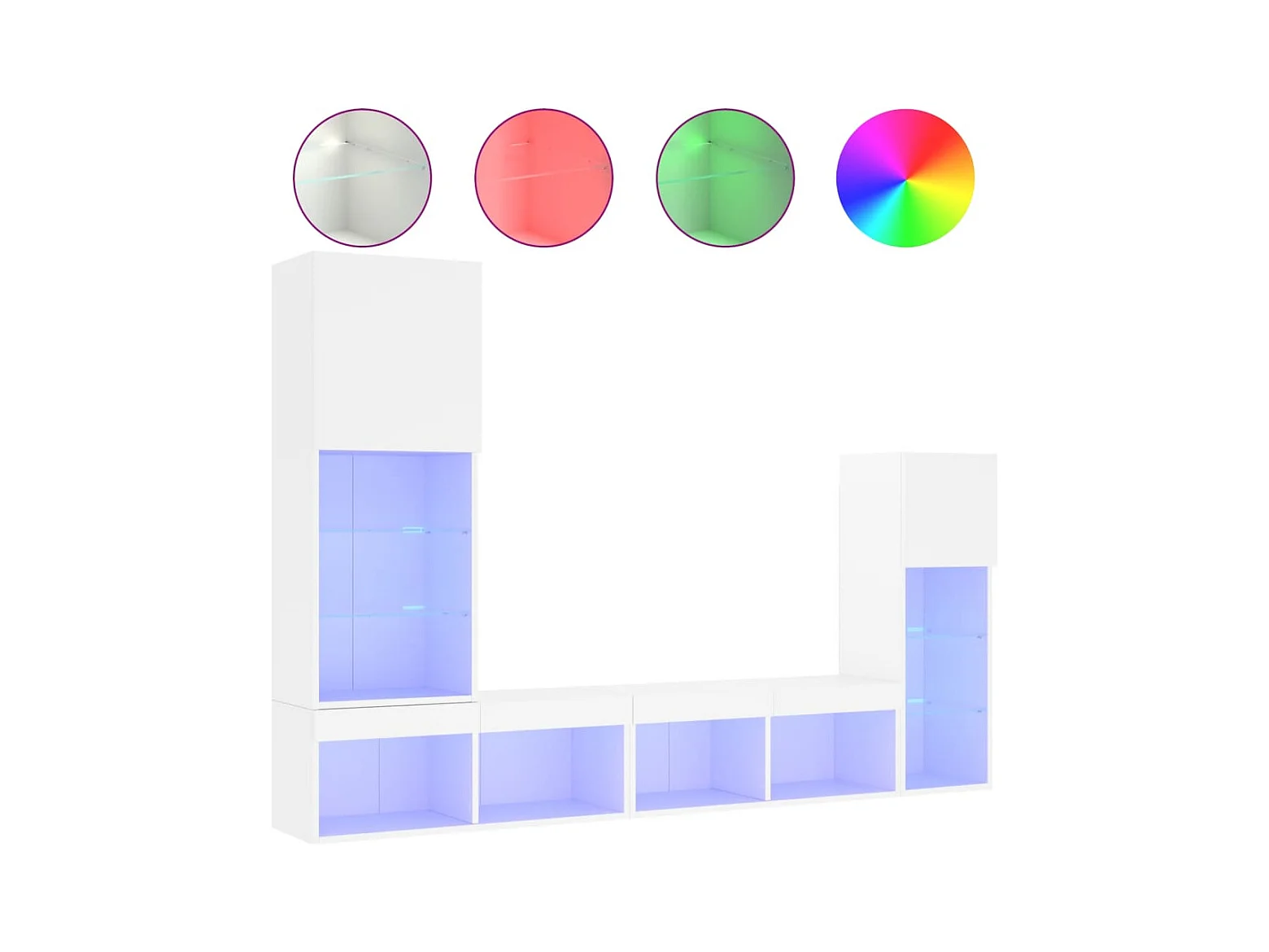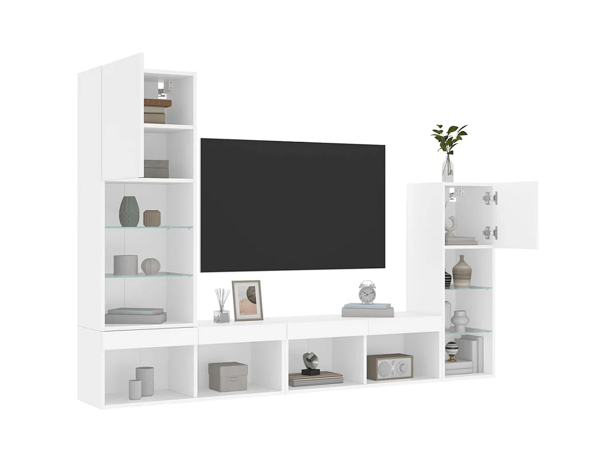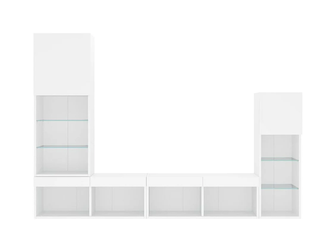 4-tlg. Wohnwand mit LED-Beleuchtung Weiß Holzwerkstoff