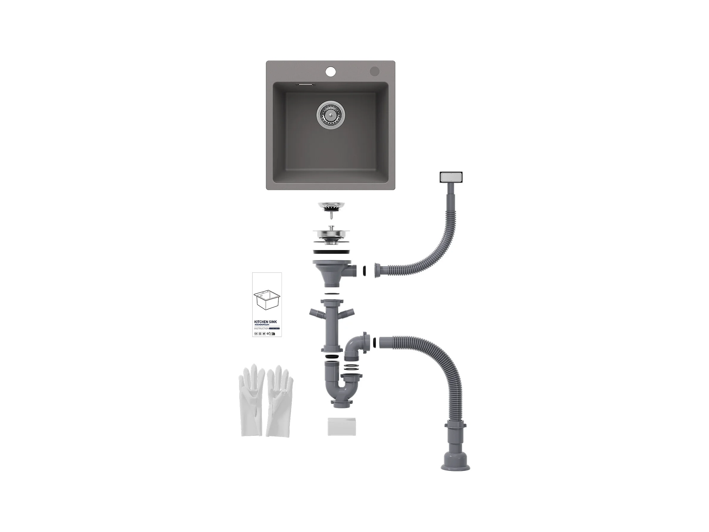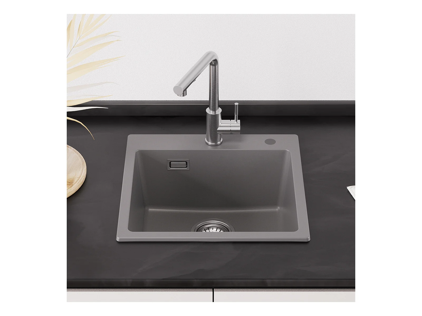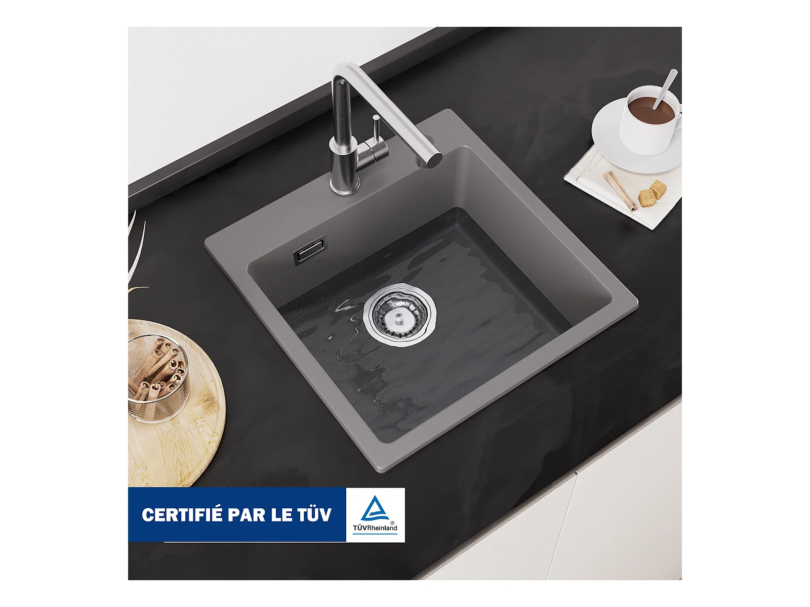 45 x 45 cm Cecipa max Graues Quarzspülbecken Einzelbecken Quarz- und Kunstharz-Küchenspüle Unterbauspüle 1 Becken, EU-Modell