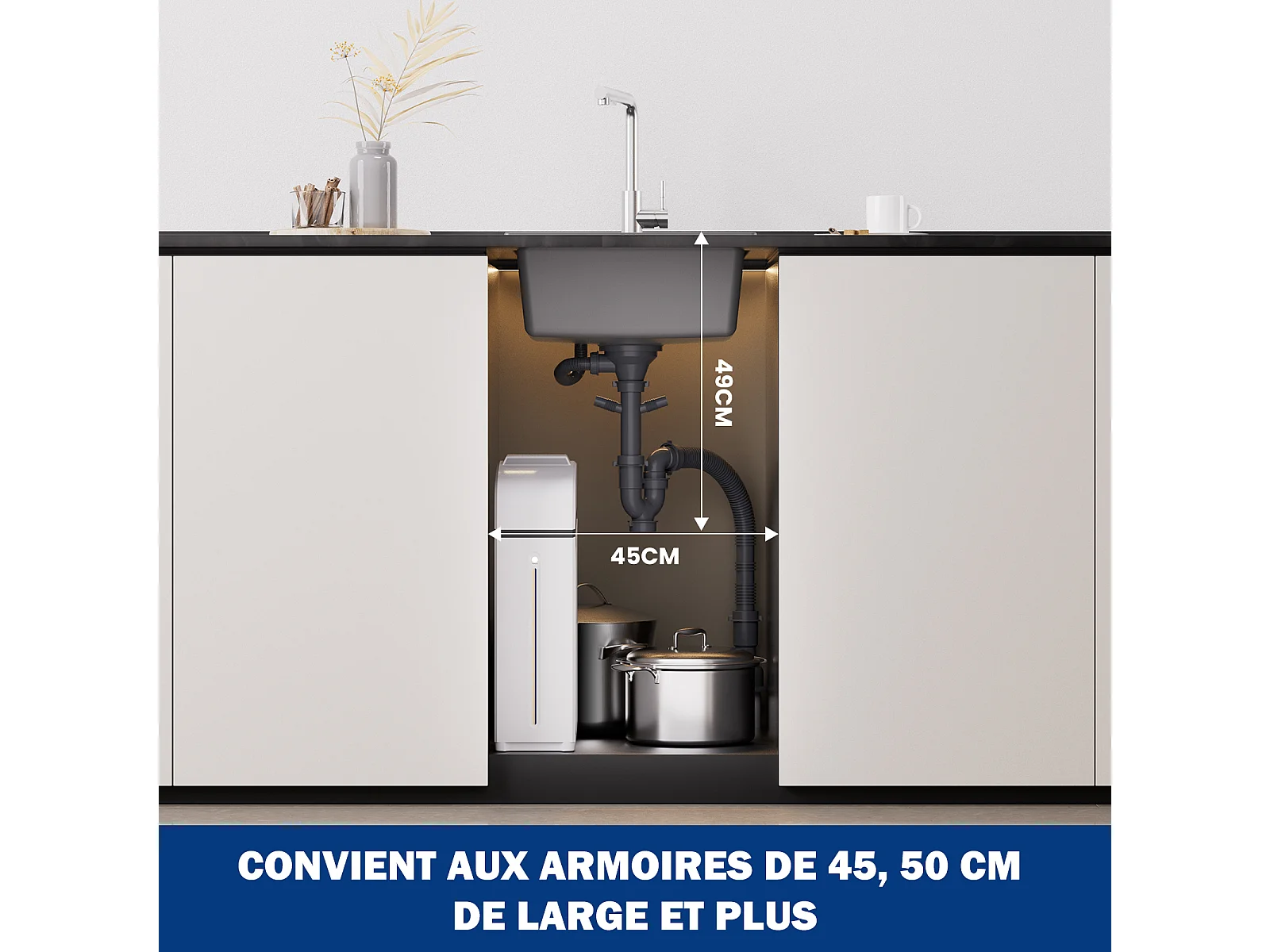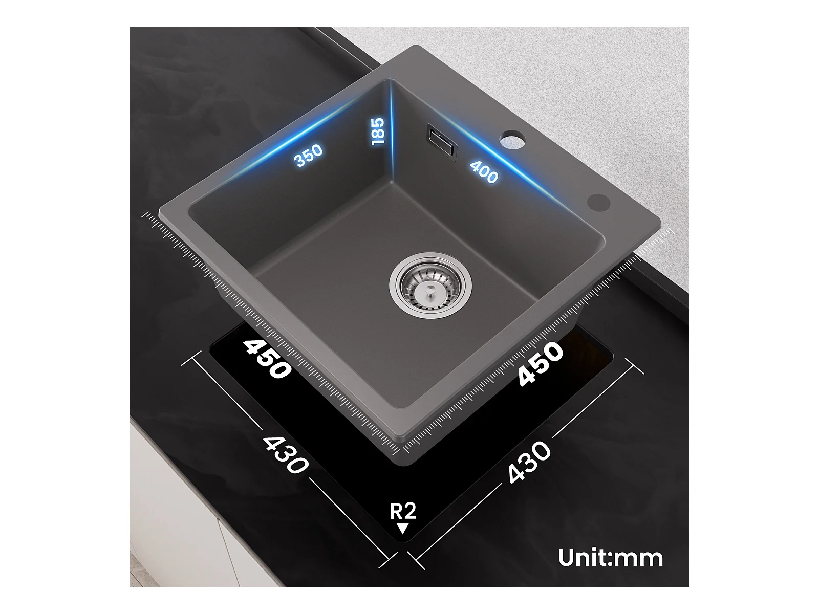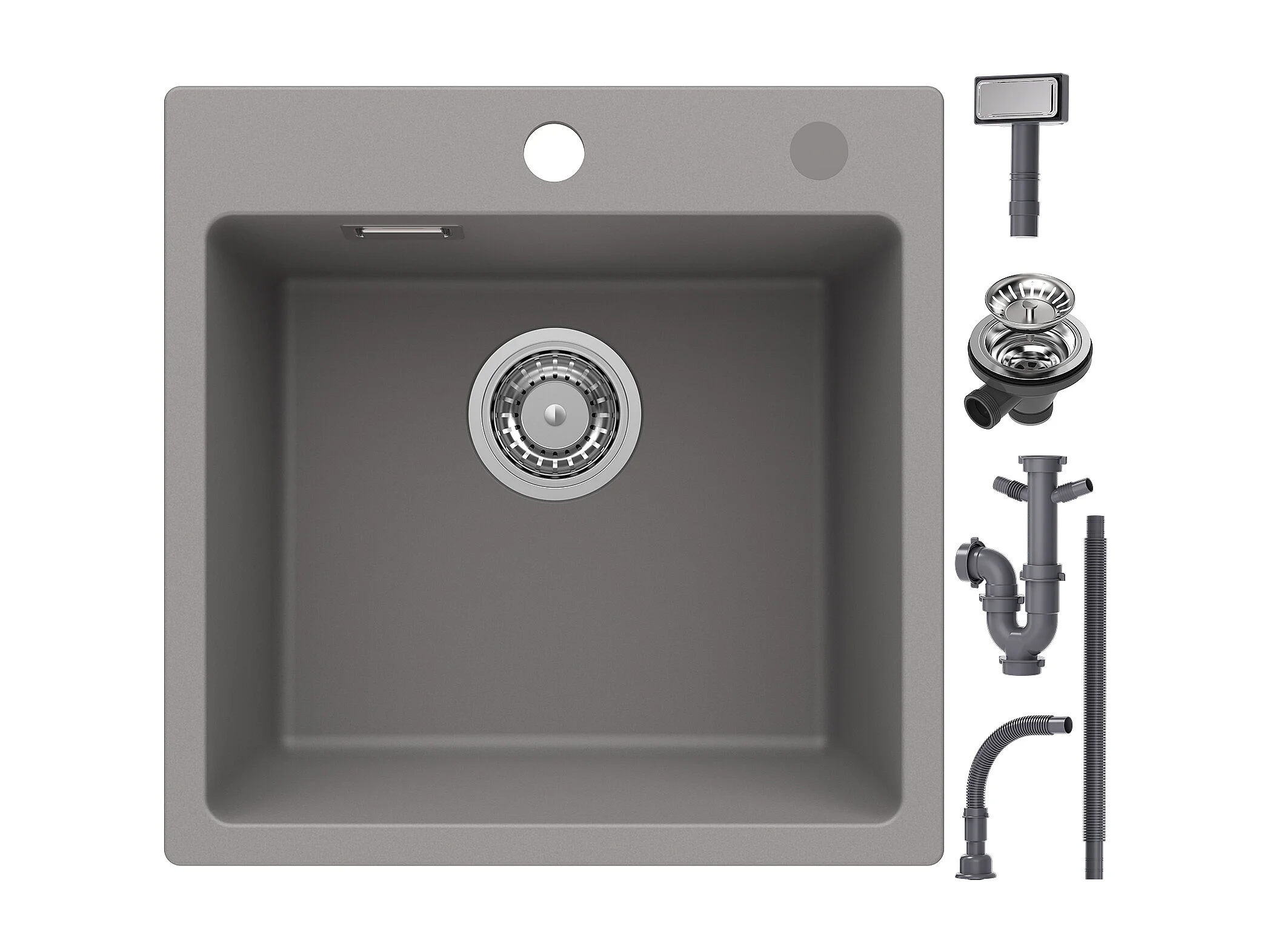 45 x 45 cm Cecipa max Graues Quarzspülbecken Einzelbecken Quarz- und Kunstharz-Küchenspüle Unterbauspüle 1 Becken, EU-Modell