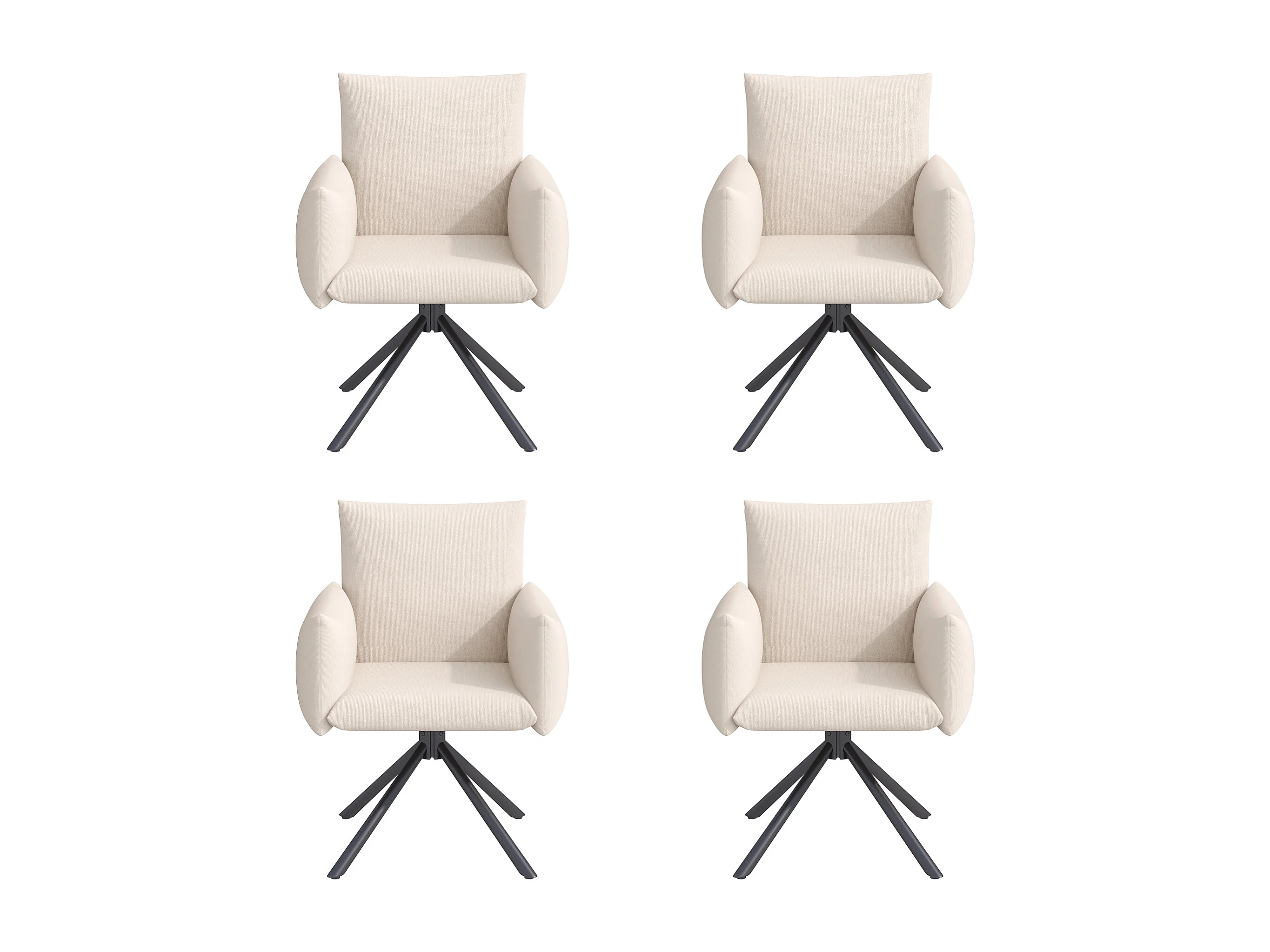 4er-Set Drehstühle, beigefarbenes Leinen, mit Armlehnen und Metallbeinen – für Esszimmer und Büro