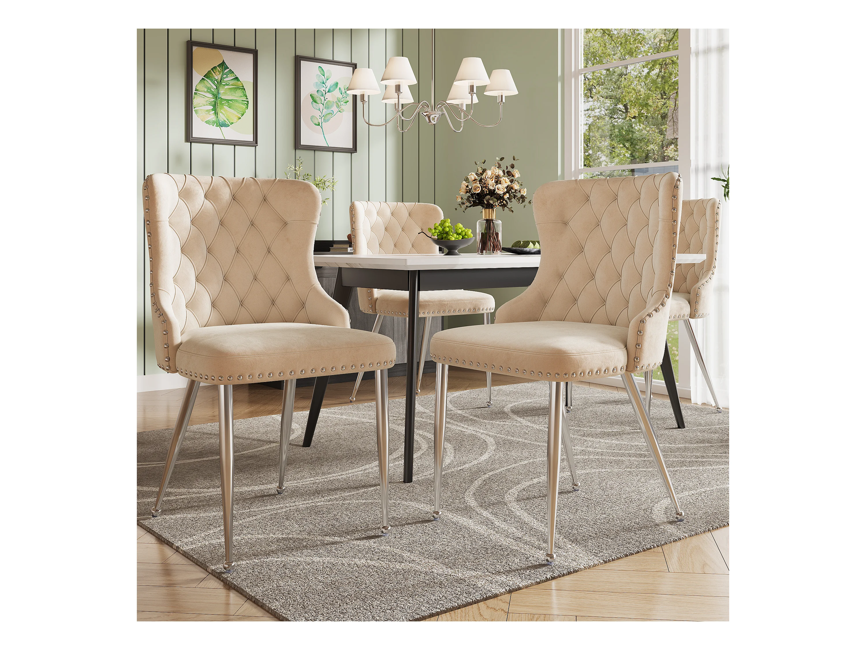 4er Set Esszimmerstühle - 54 x 54 x 85,5 cm - Schminkstuhl - verstellbare silberne Beine - Samt - Beige