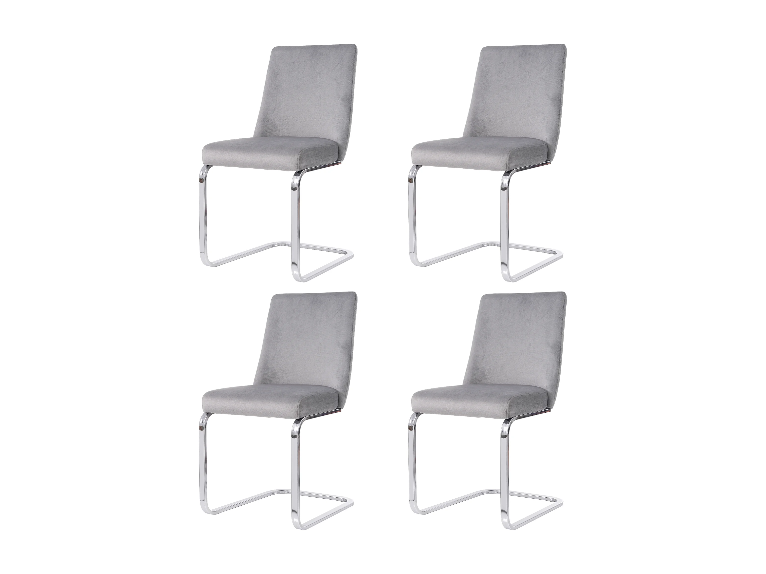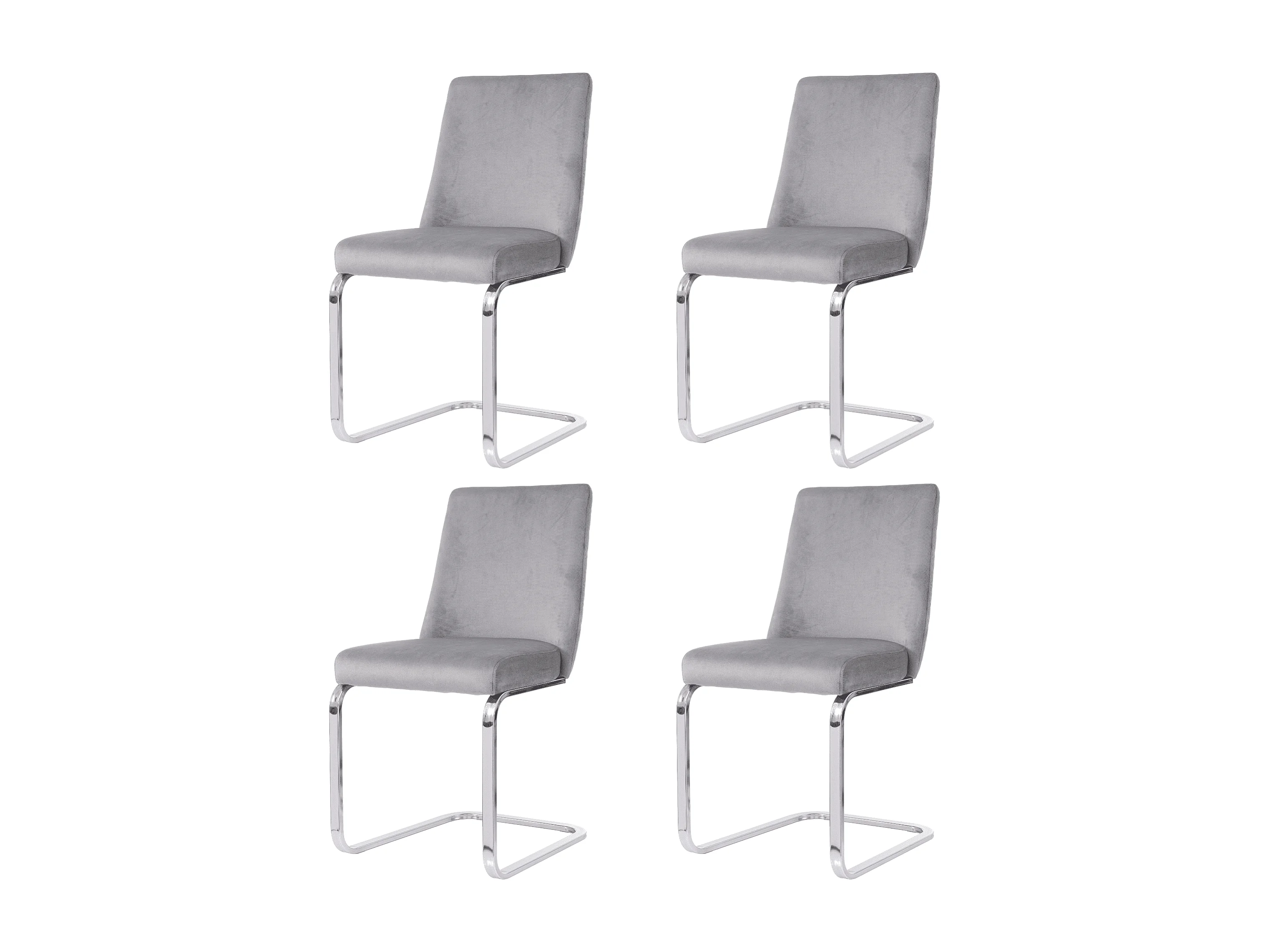4er-Set Esszimmerstühle - grauer Samt - mit gepolsterter Rückenlehne und silbernen Metallbeinen