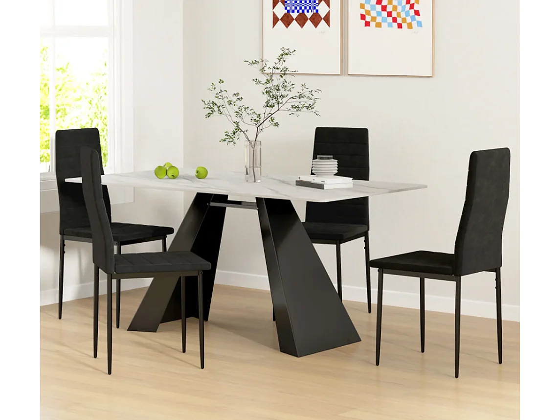 4er-Set Esszimmerstühle, Küchenstuhl armloses Design, Stoffpolsterung, Metallbeine