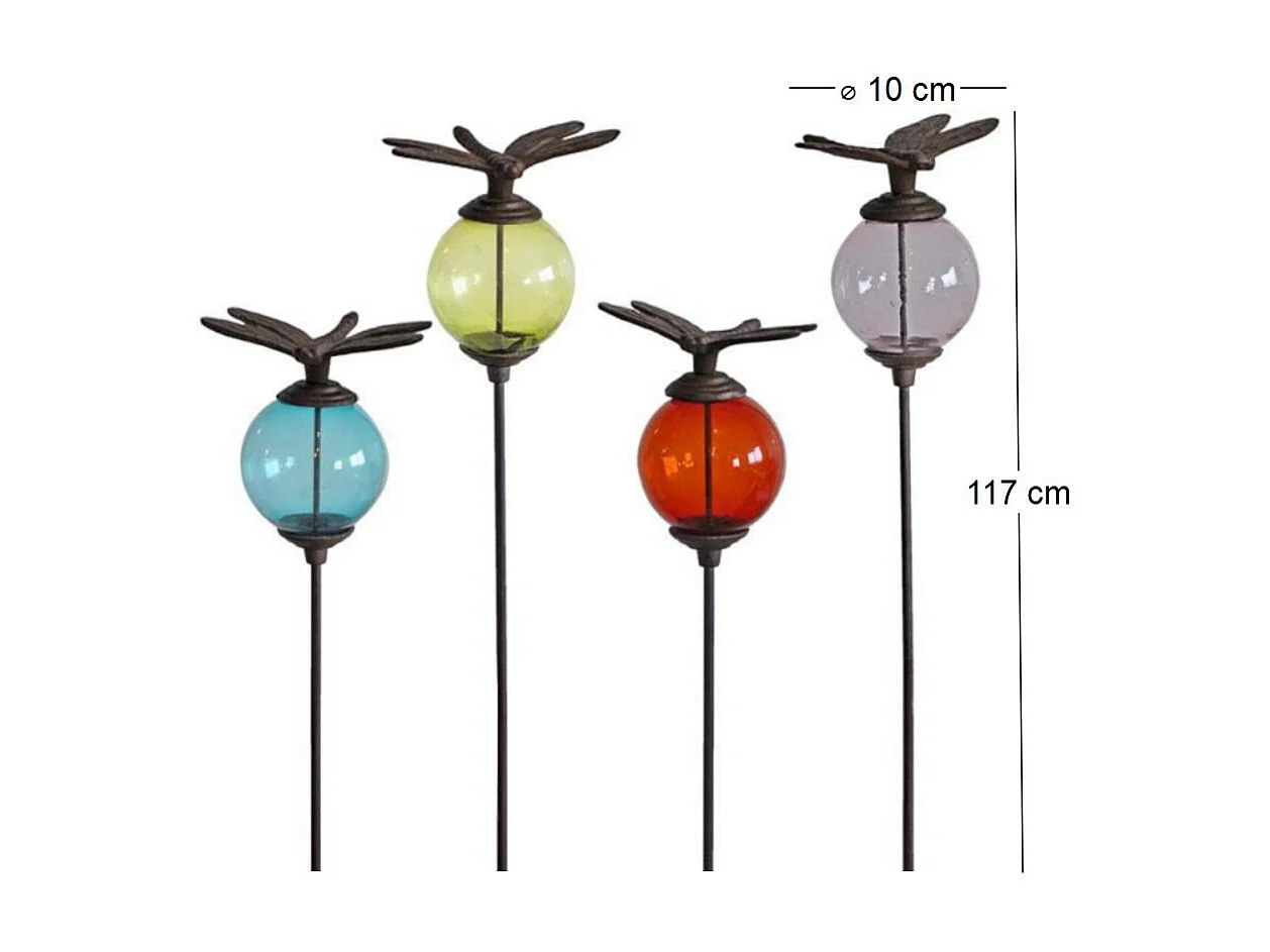 4er-Set: Pflanzstäbe Kugeln bunt Tiere Libellen