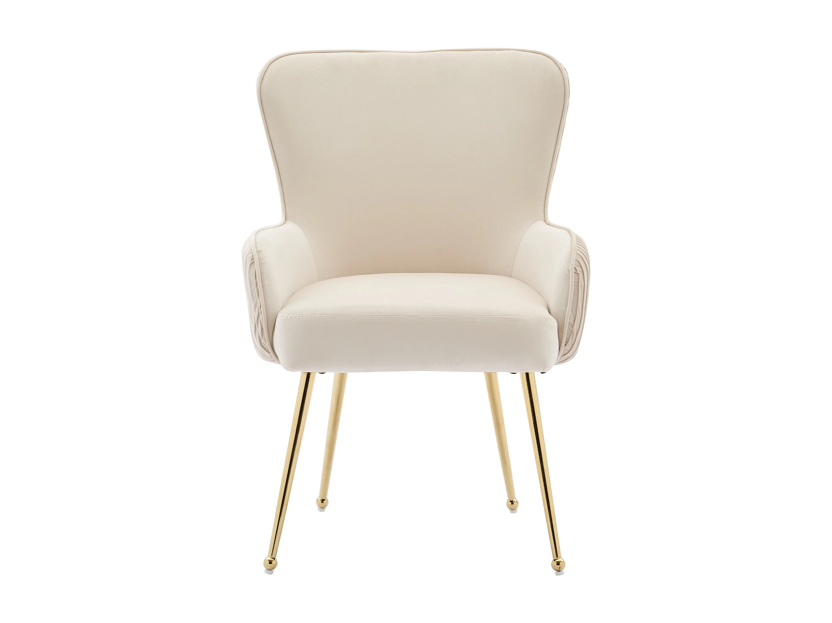 4er-Set Samtstühle mit goldfarbenen Metallbeinen und Armlehnen – beige und gold