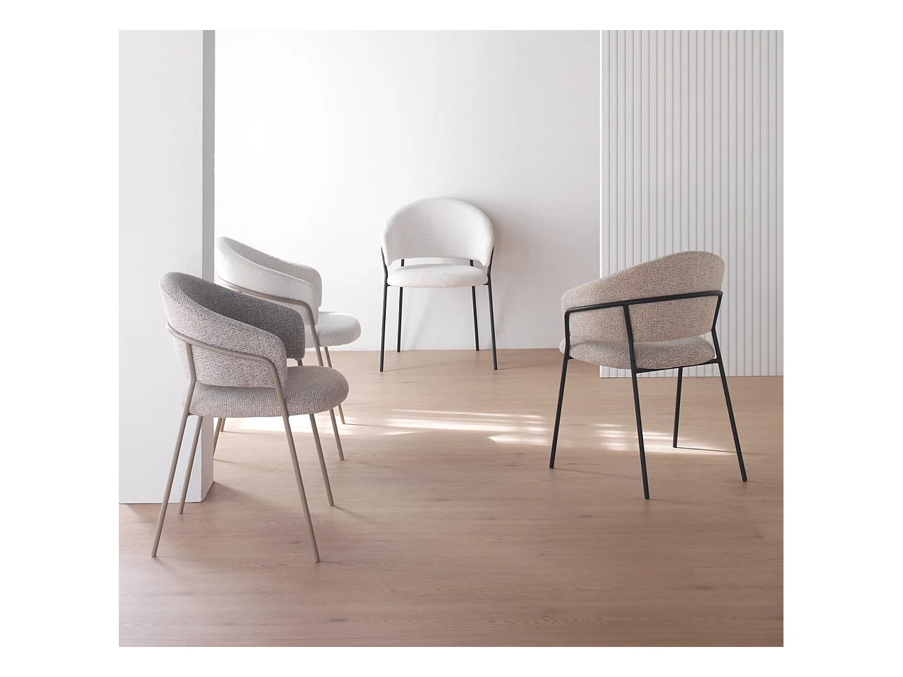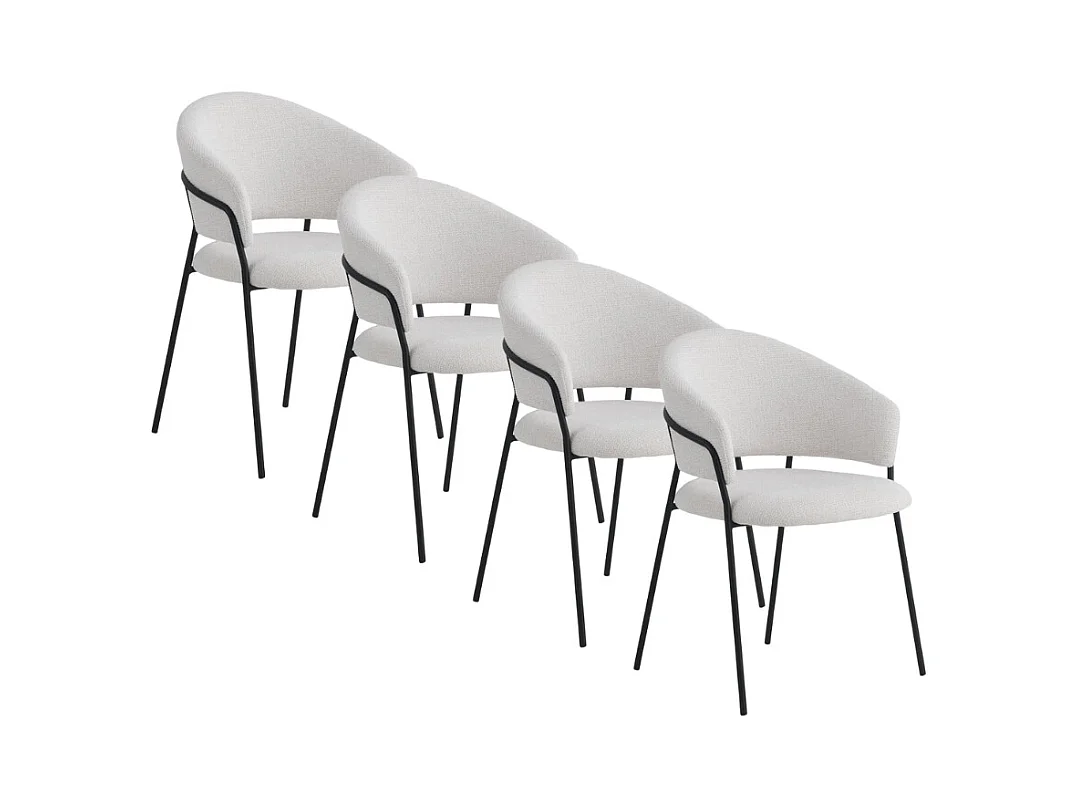 4er-Set Sessel mit cremefarbenem Chenille-Bezug
